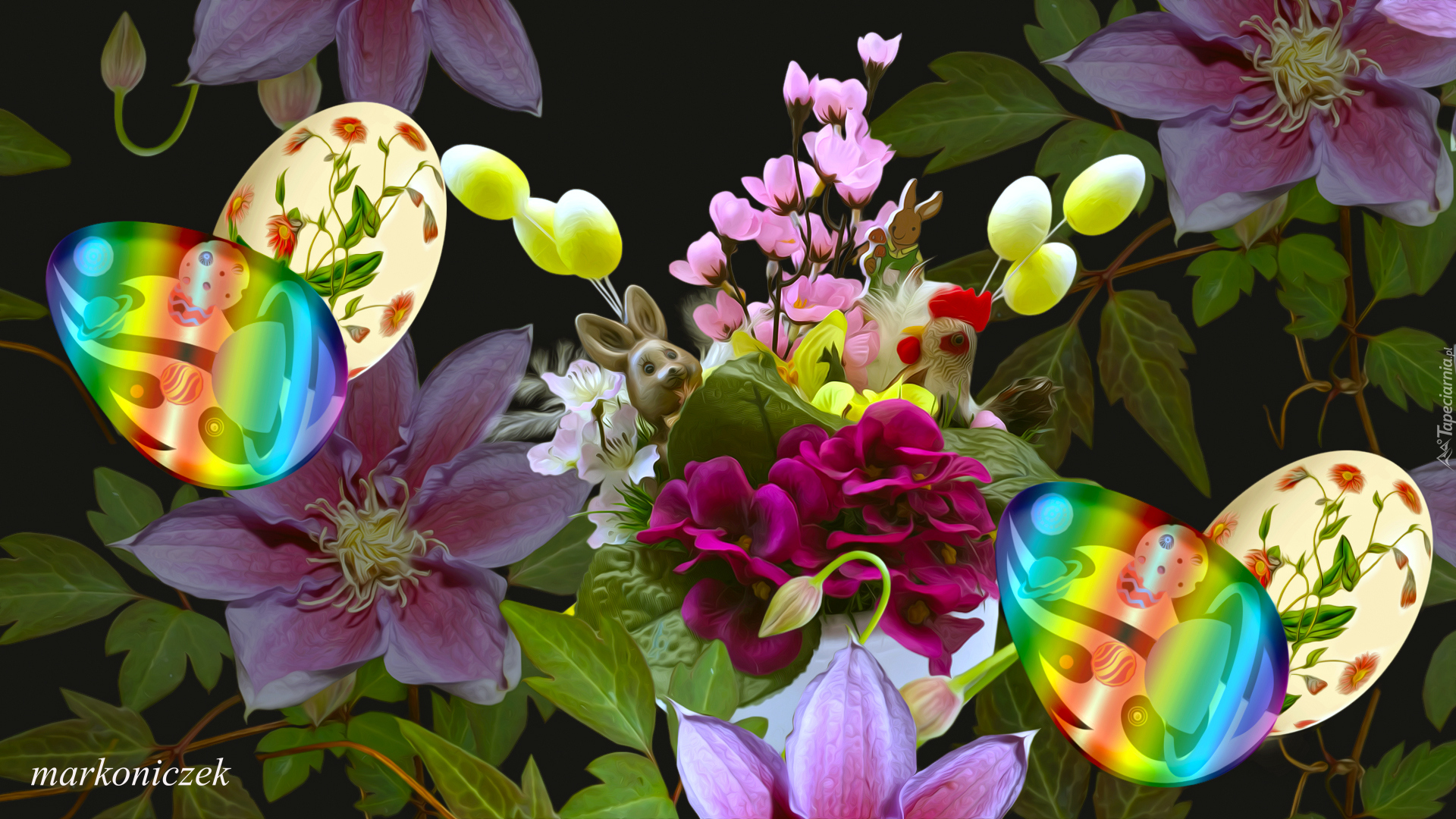 Edytor tapety: Barwne kwiatki i malowane pisanki