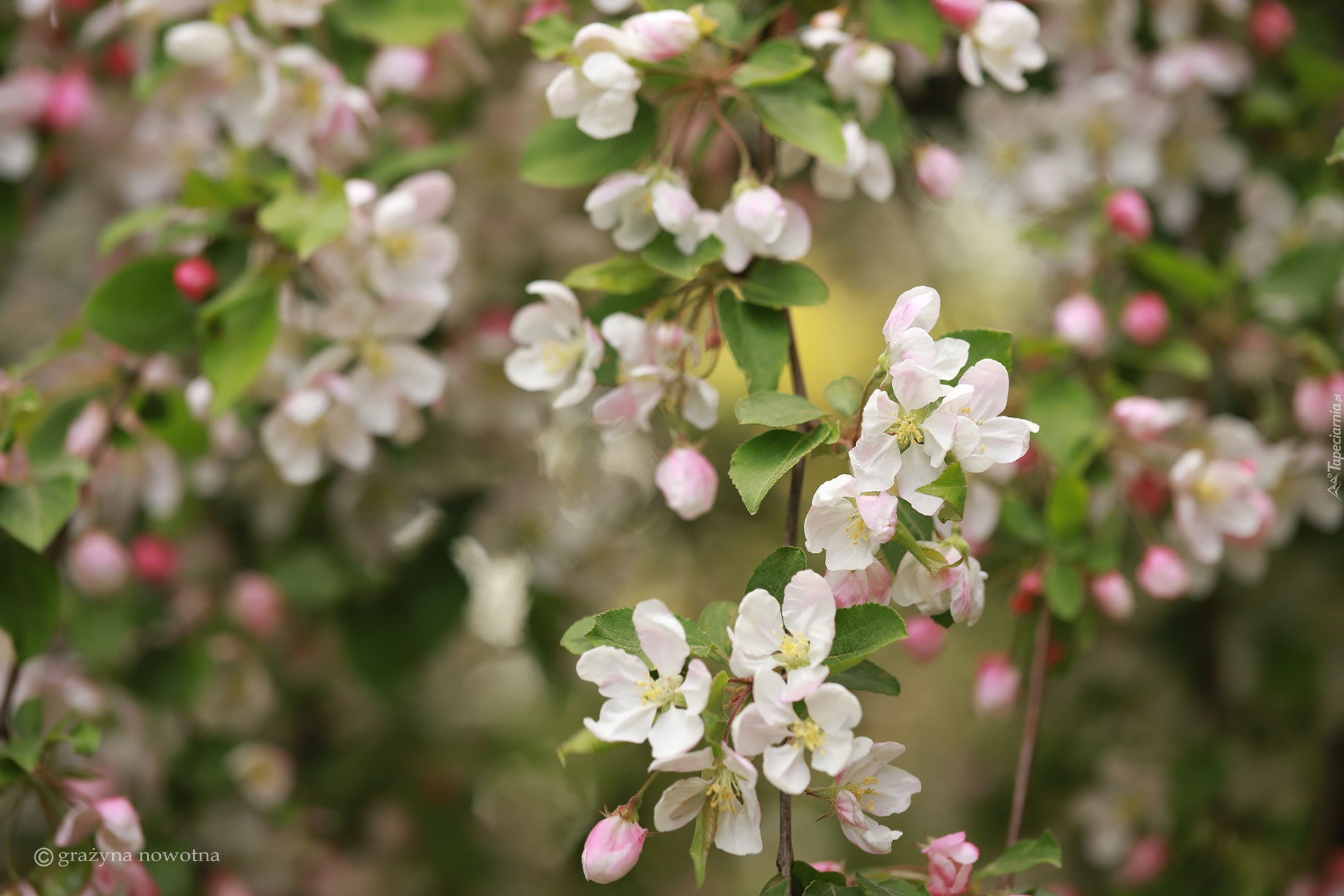 Edytor tapety: Biało-różowe kwiaty jabłoni