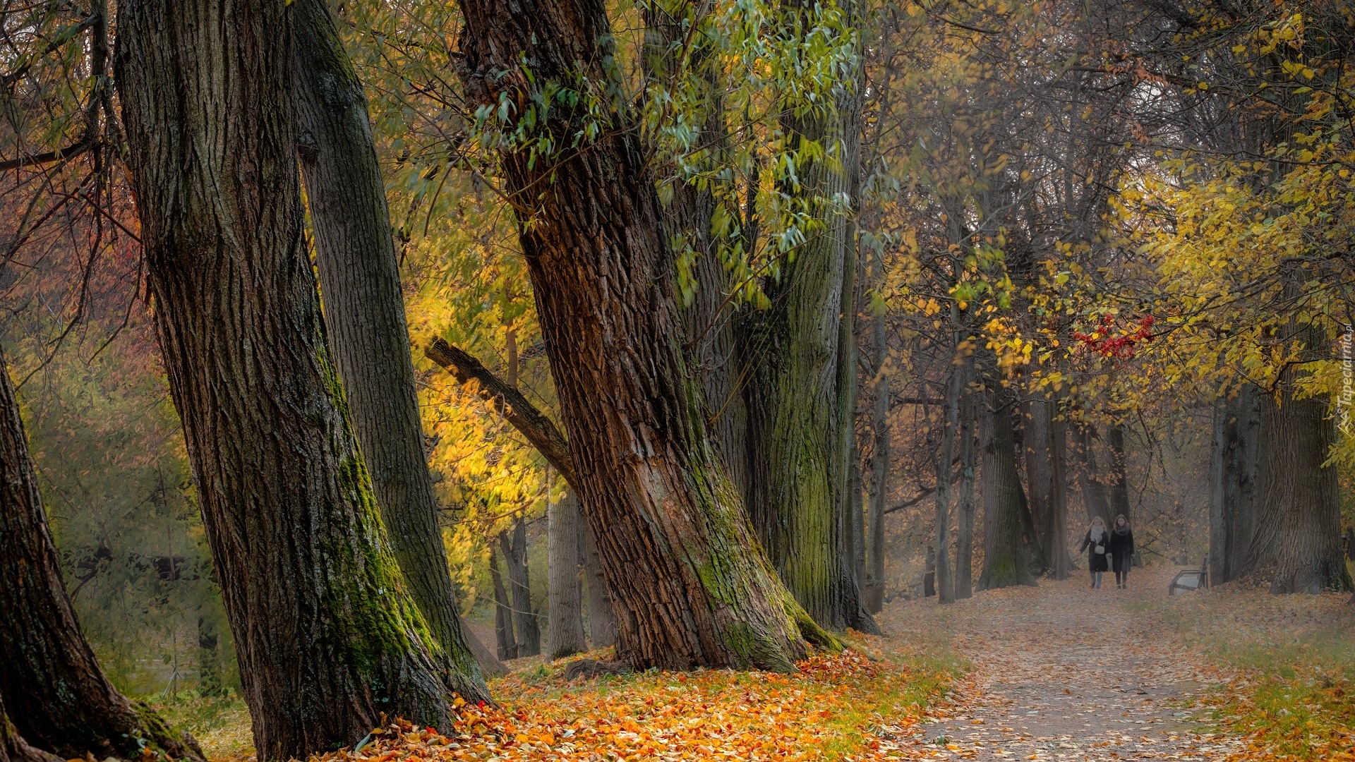 Edytor tapety: Kobiety na spacerze w jesiennym parku