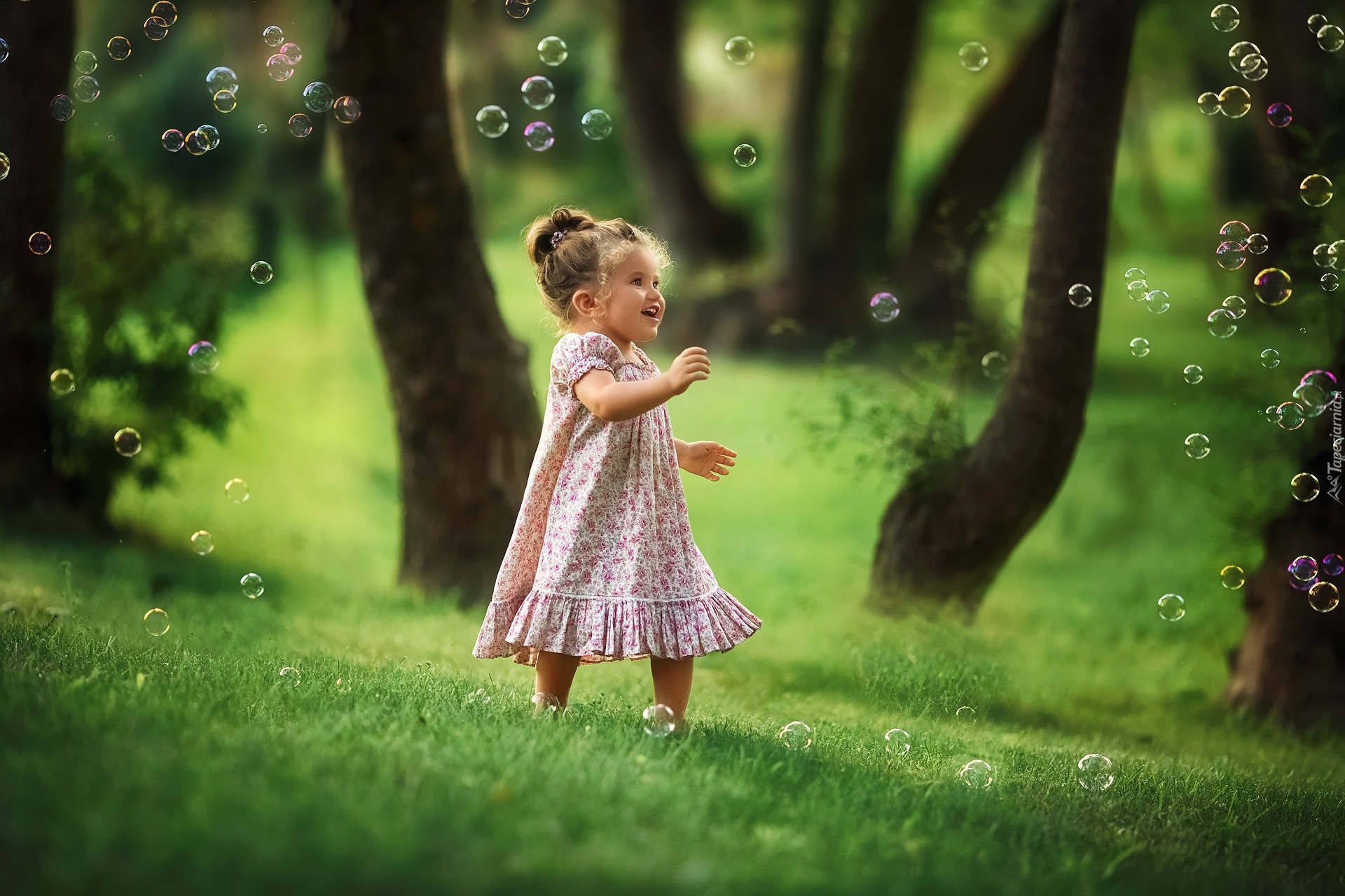 Edytor tapety: Dziewczynka wśród mydlanych baniek