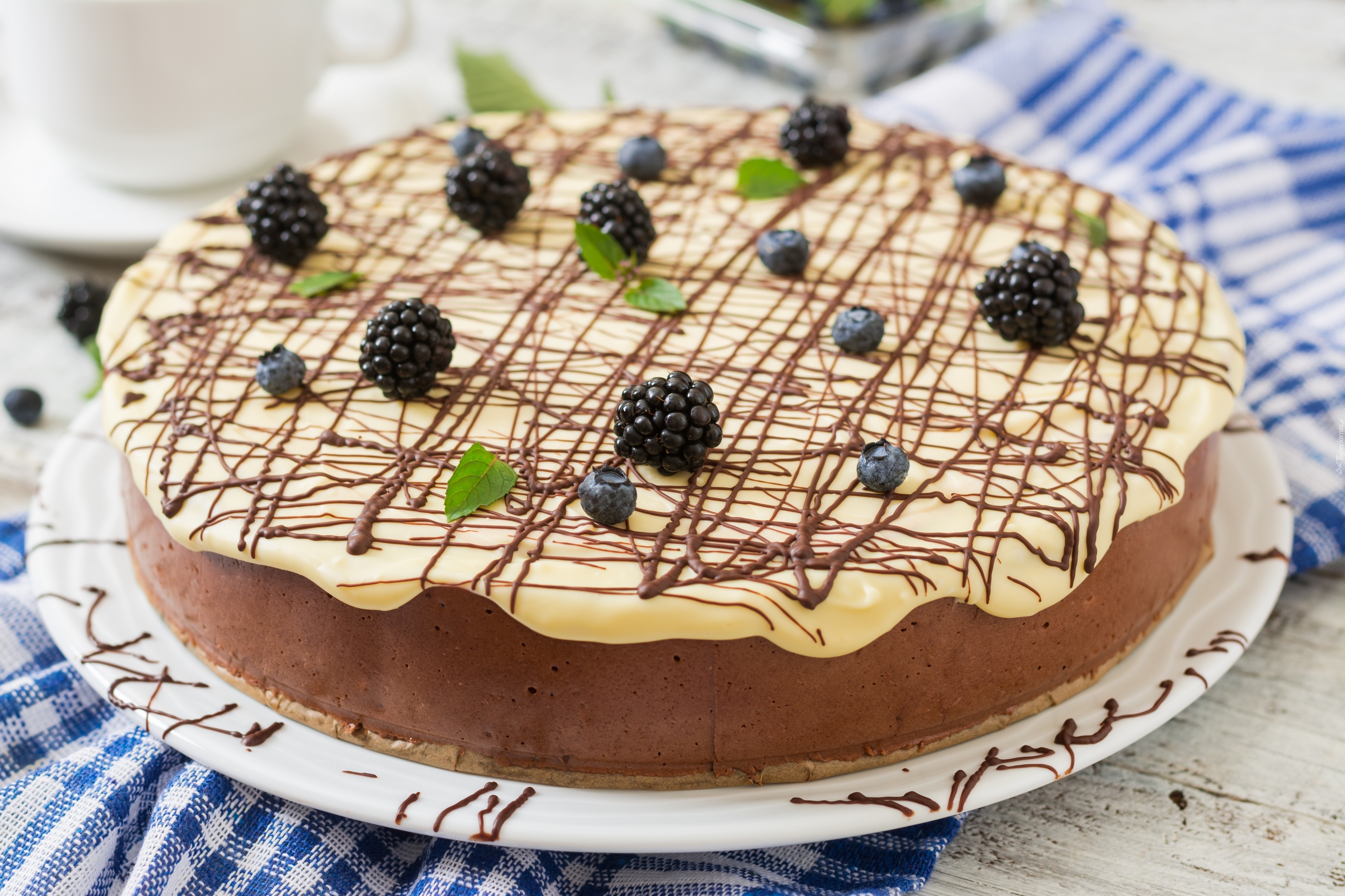 Edytor tapety: Ciasto przystrojone jeżynami i jagodami