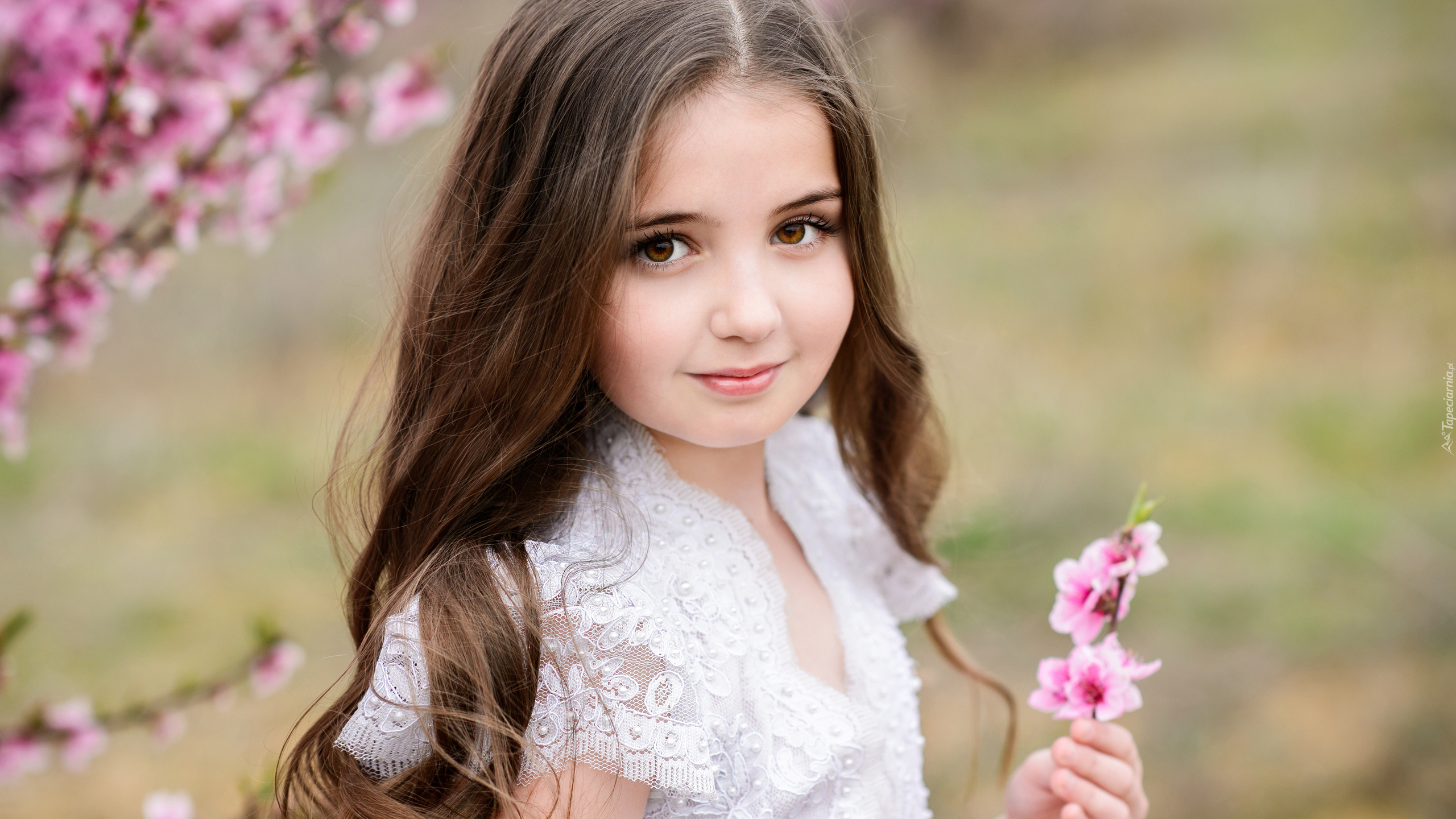 Edytor tapety: Dziewczynka z kwiatkiem w rączce