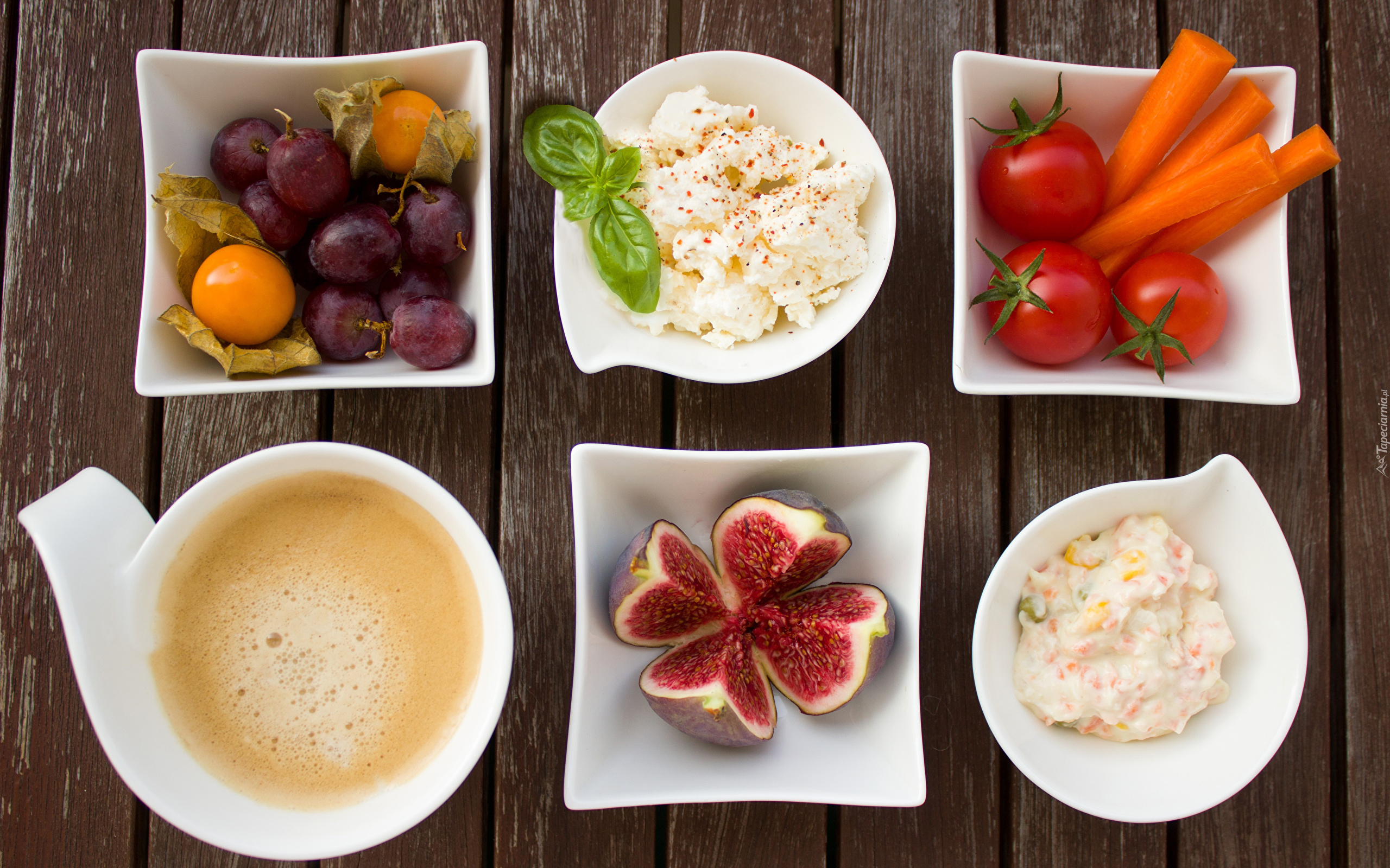 Edytor tapety: Jedzenie w białych miseczkach