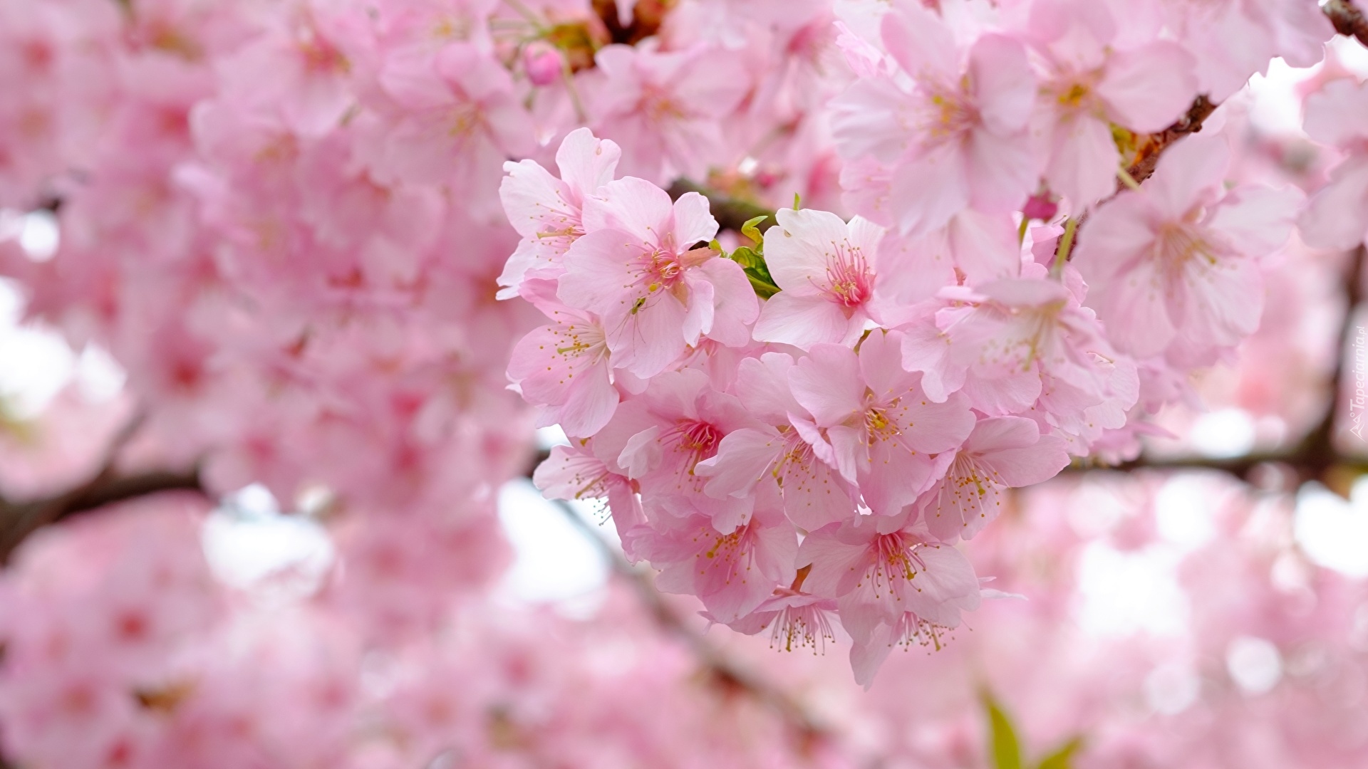 Edytor tapety: Różowe kwiaty kwitnącej wiśni
