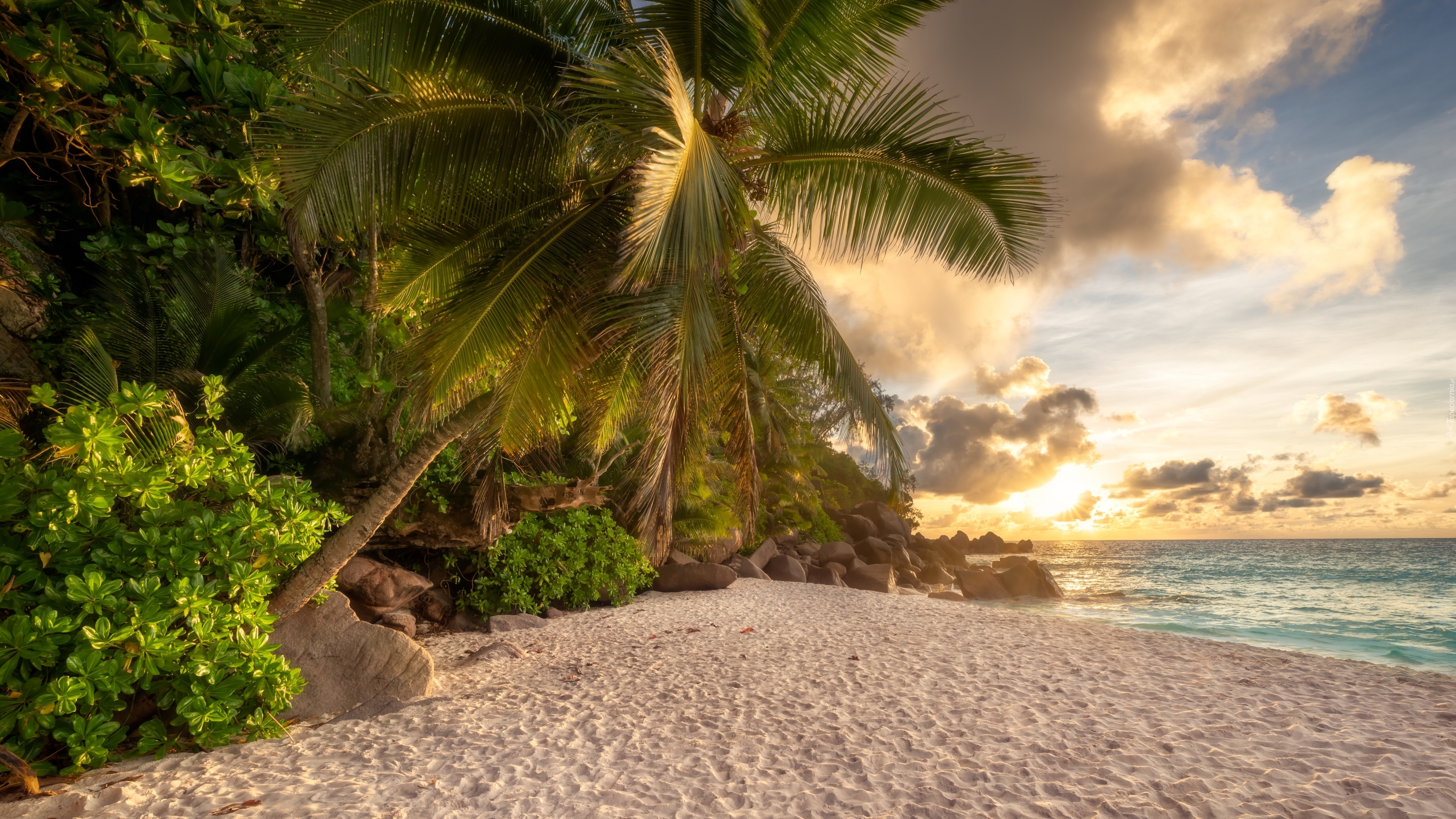 Edytor tapety: Pochylona palma nad piaszczystą plażą