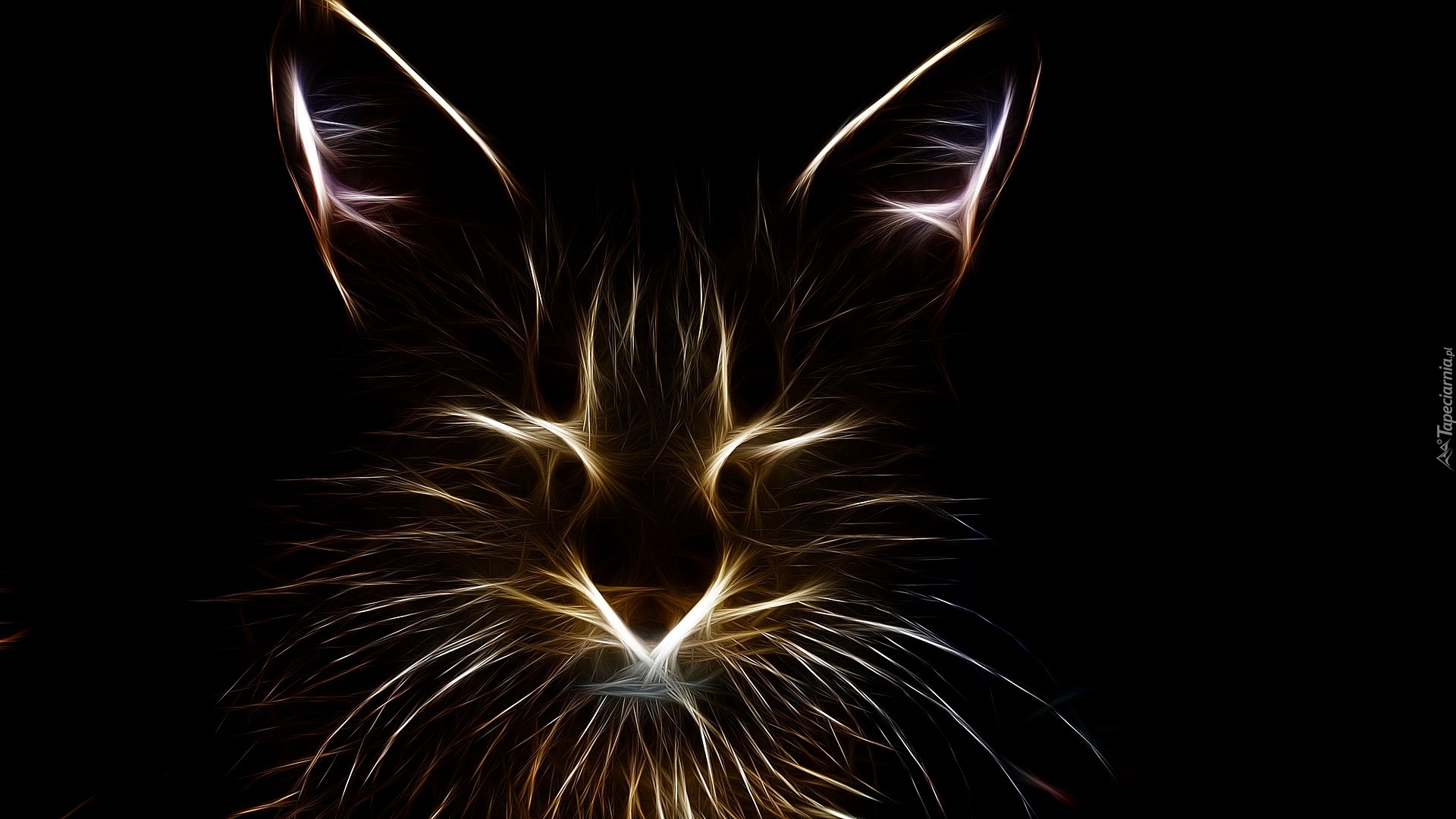 Edytor tapety: Kot w grafice fractalius na czarnym tle
