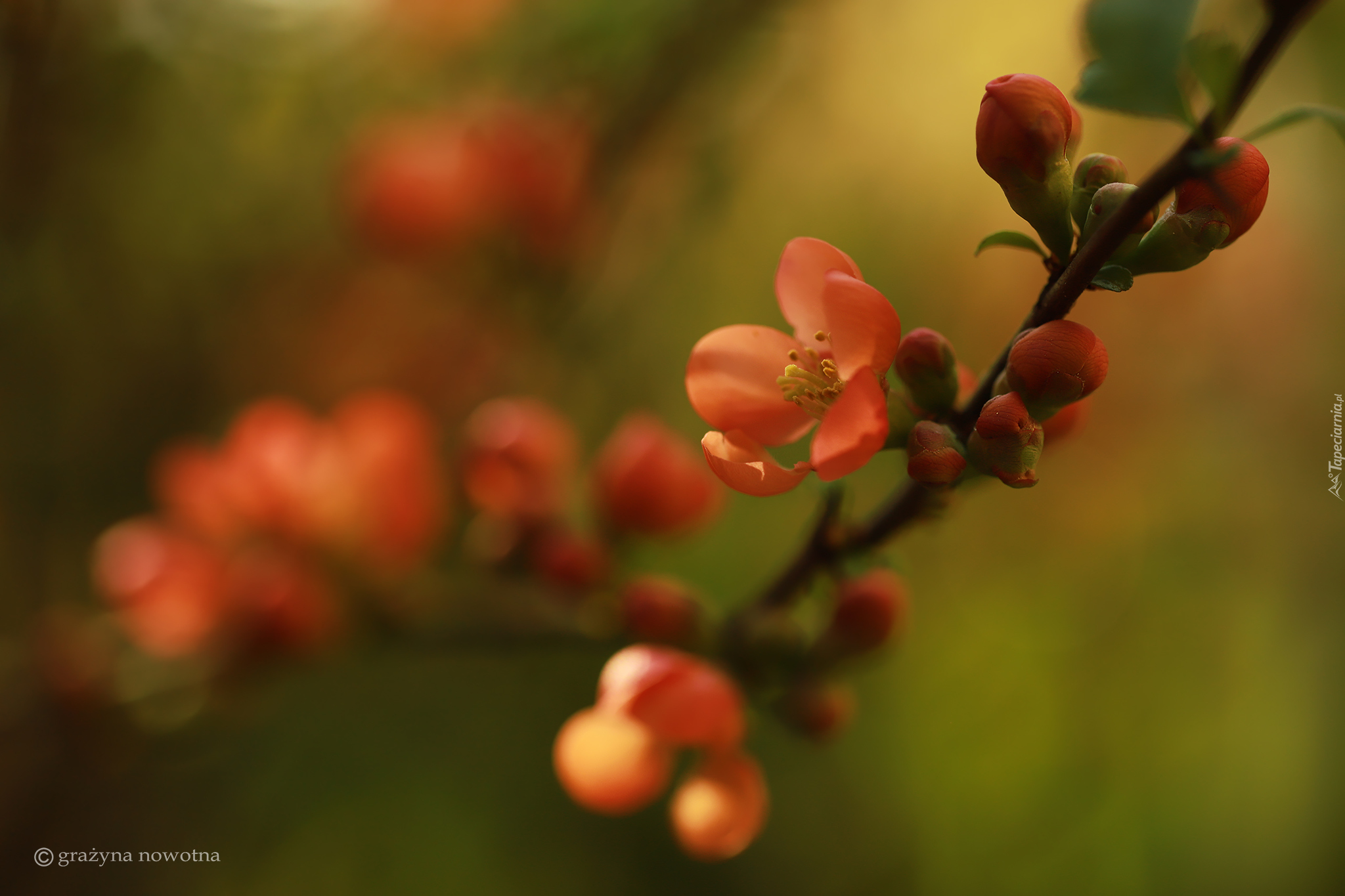 Edytor tapety: Gałązka pigwowca w rozmyciu