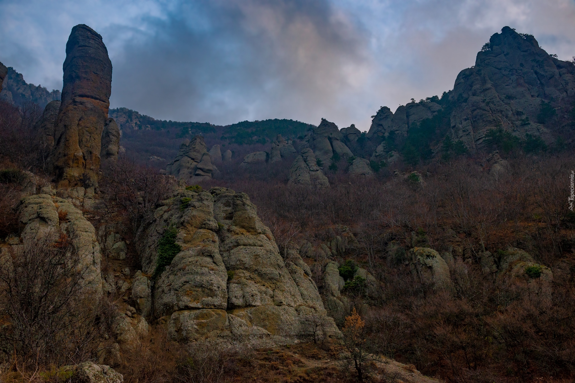 Edytor tapety: Drzewa pomiędzy formacjami skalnymi
