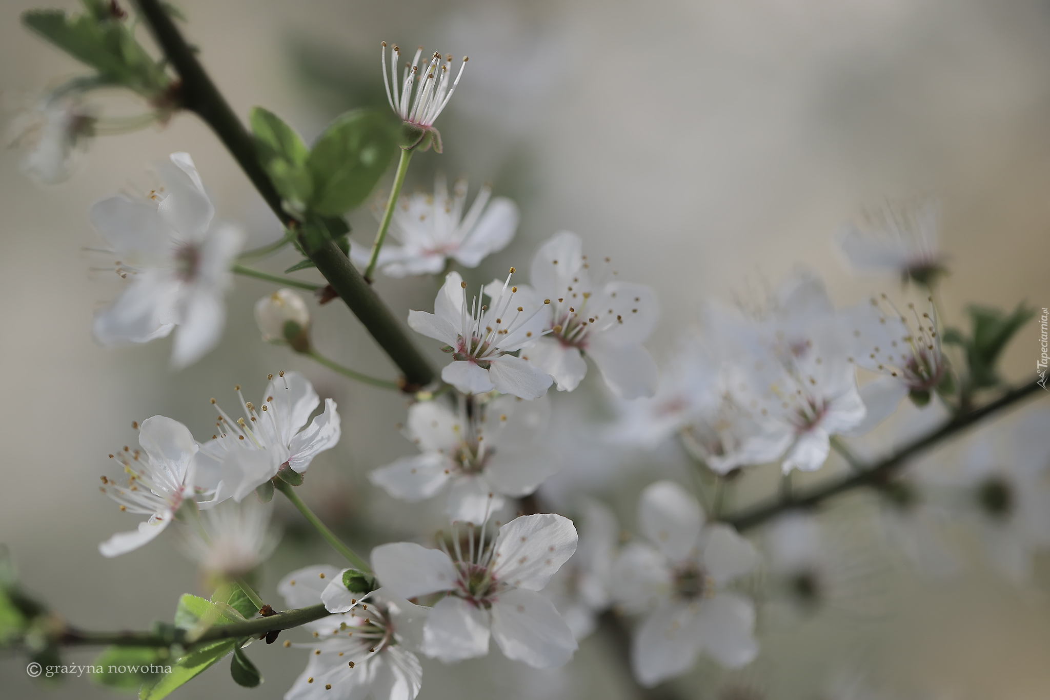 Edytor tapety: Kwitnąca gałązka z białymi kwiatami