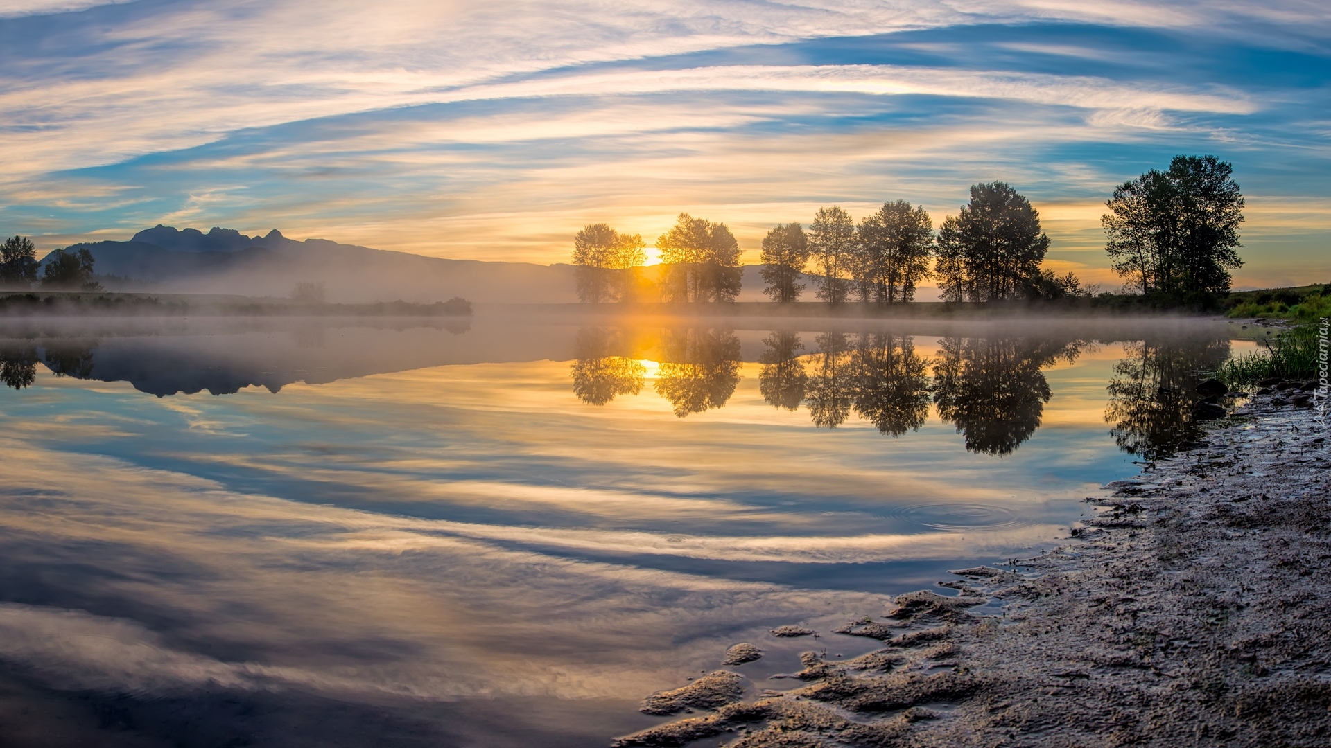 Edytor tapety: Drzewa nad rzeką Alouette River w Kanadzie