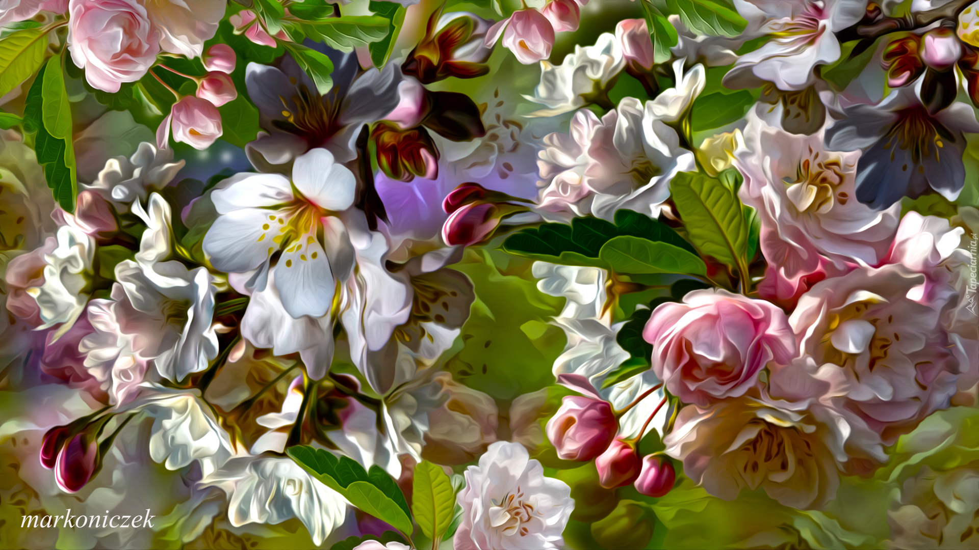 Edytor tapety: Kwiaty drzewka owocowego w grafice