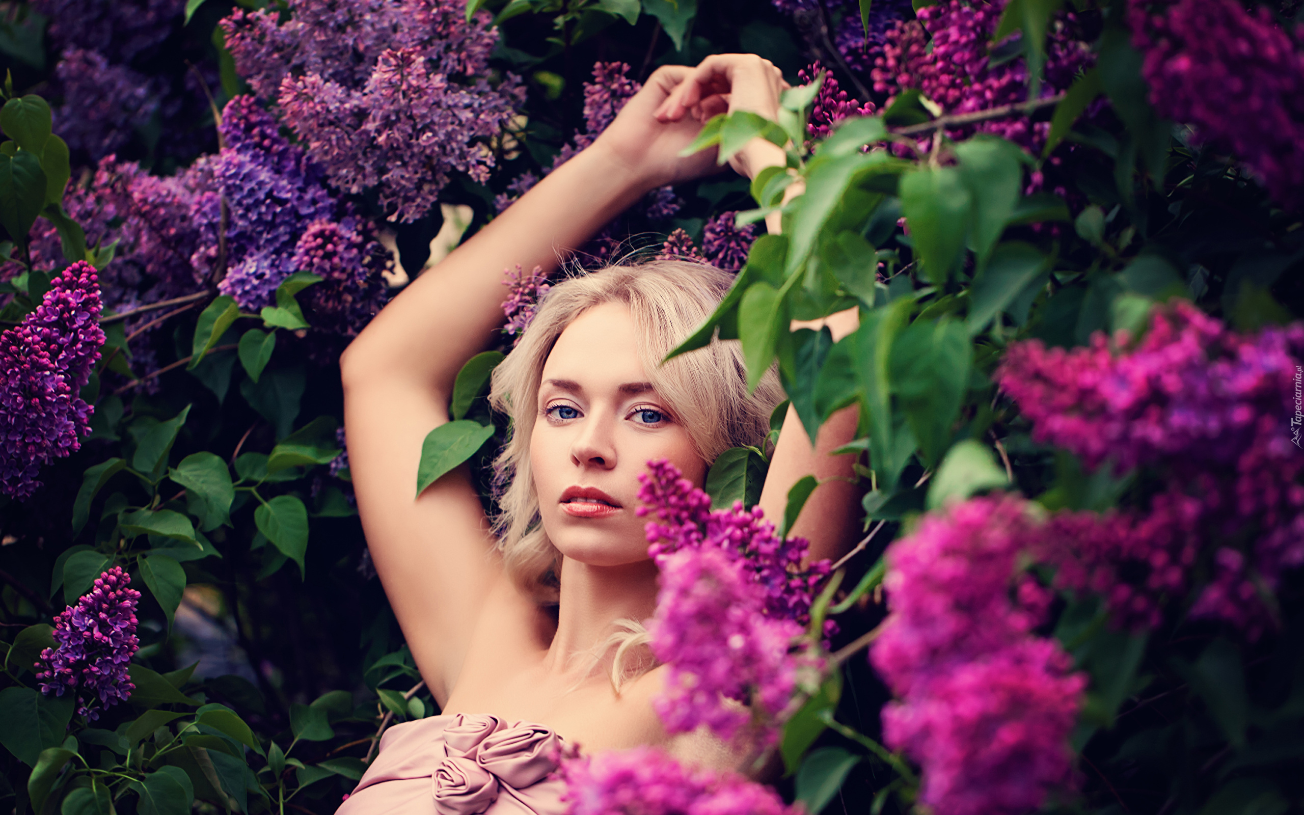 Edytor tapety: Blondynka w kwiatach bzu