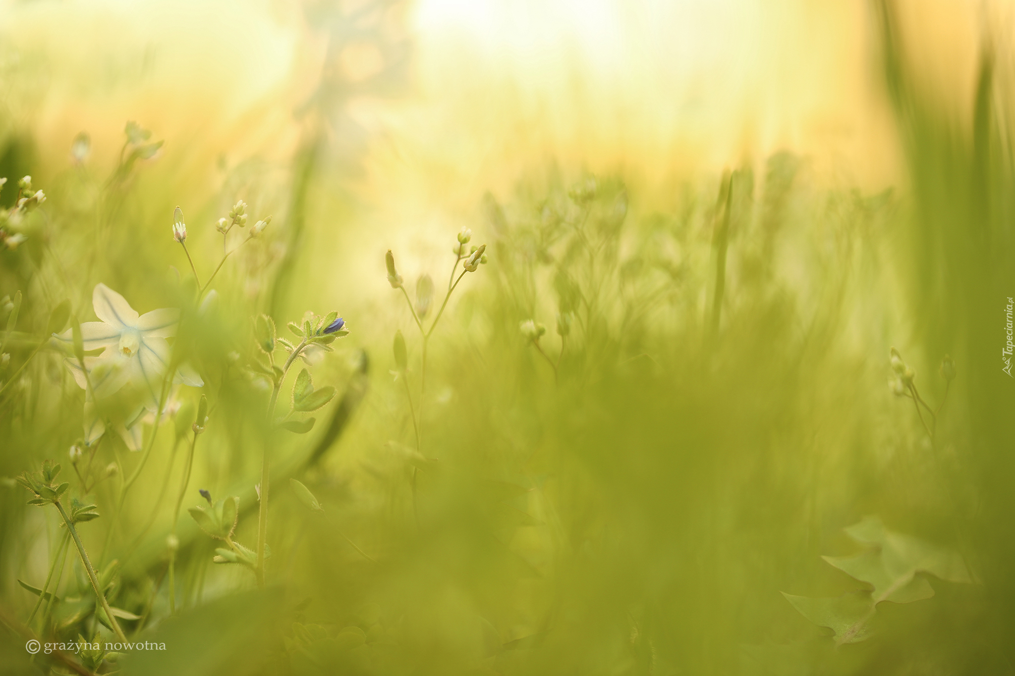 Edytor tapety: Rozmyte kwiaty i trawy w słońcu