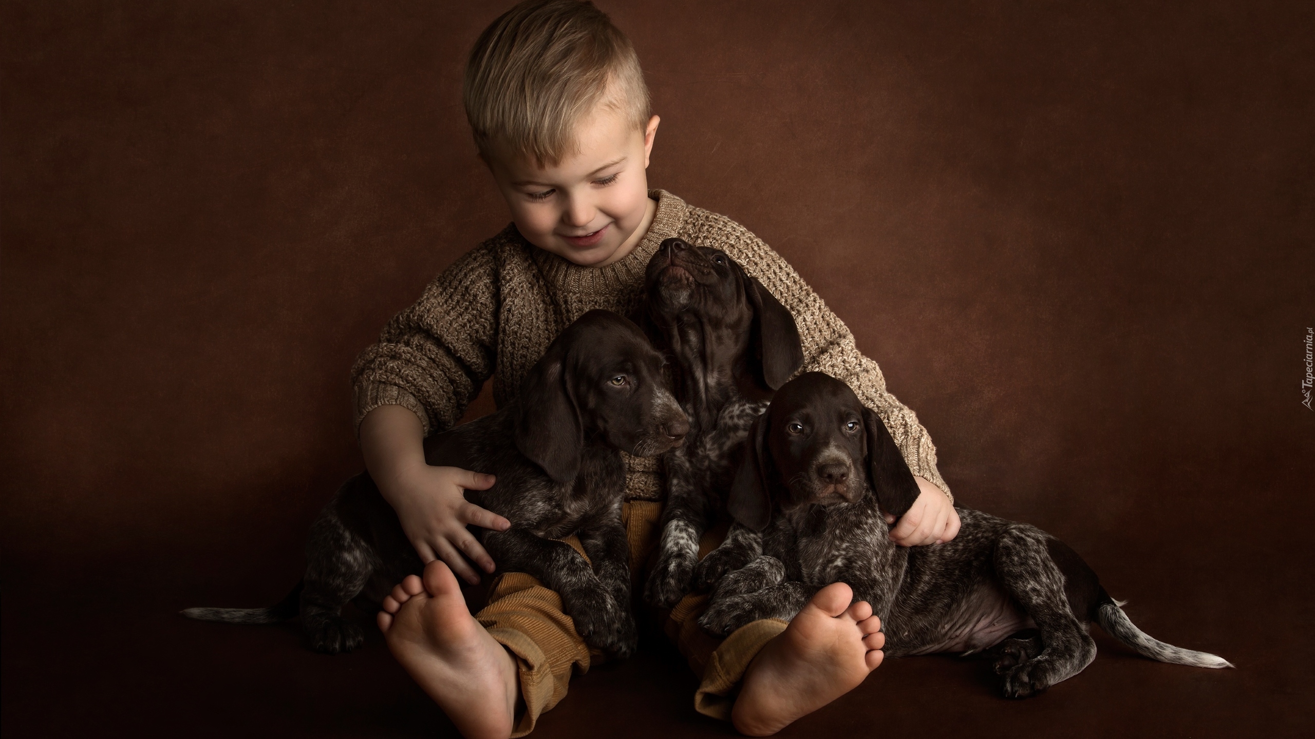 Edytor tapety: Chłopczyk z szczeniakami wyżła niemieckiego