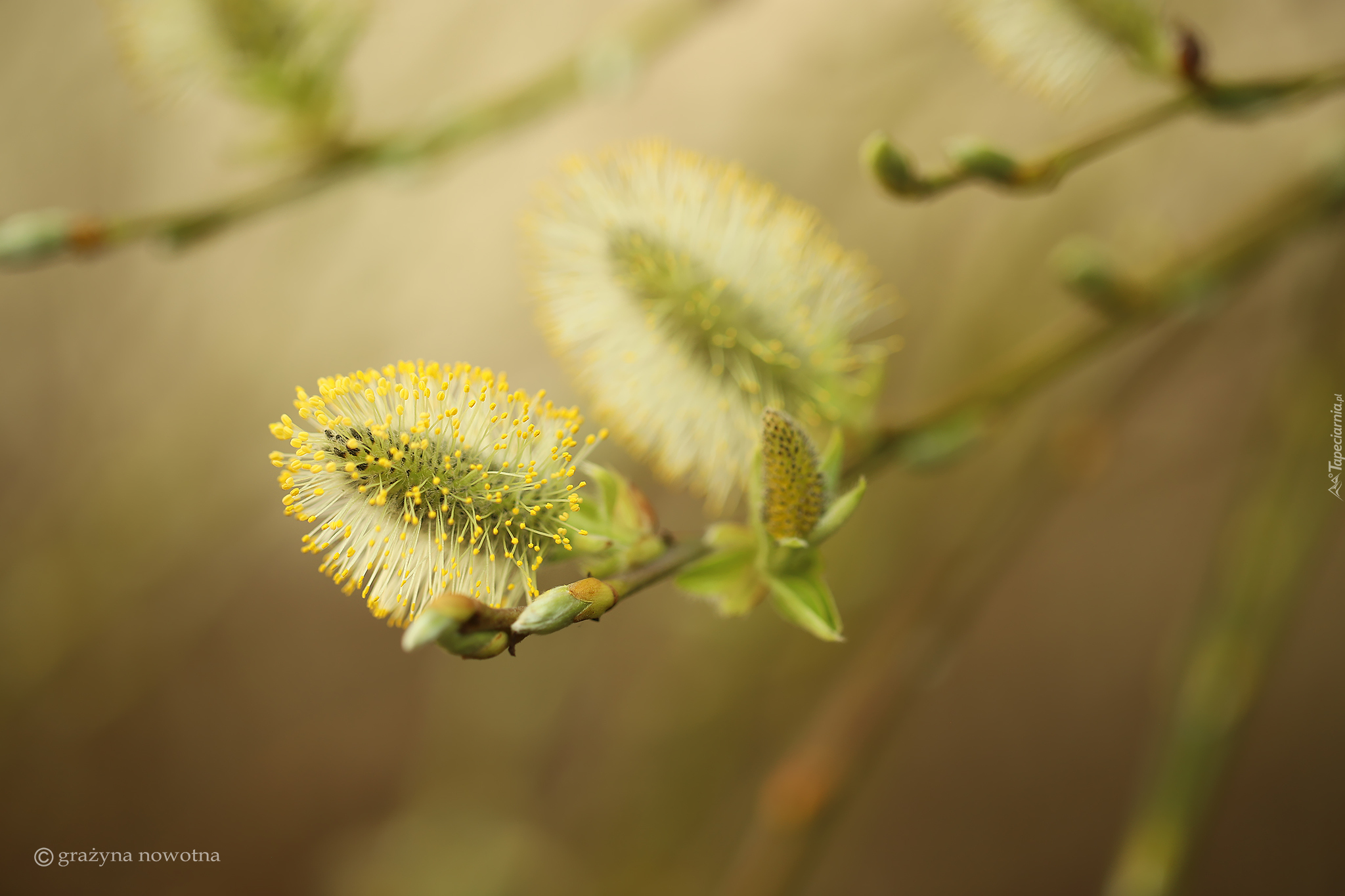 Edytor tapety: Gałązka z kwitnącymi baziami