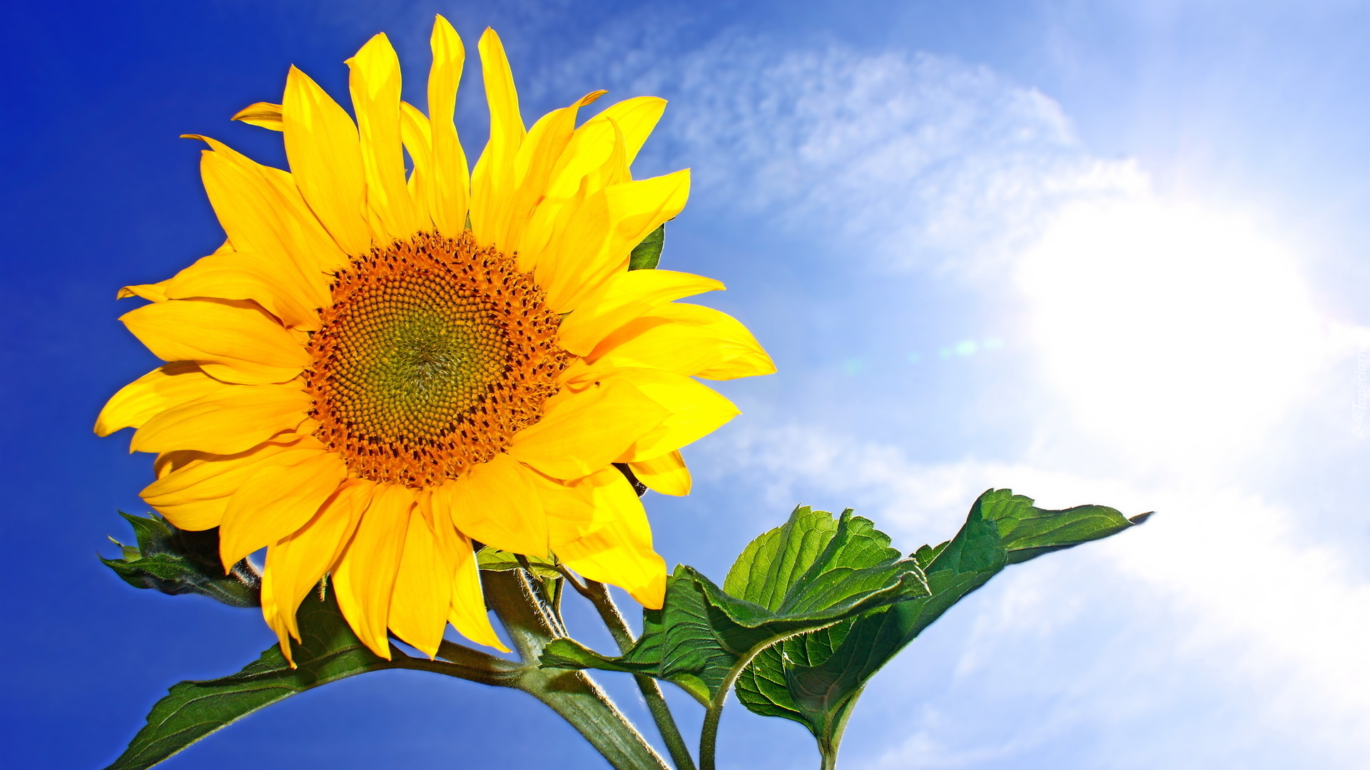 Edytor tapety: Słonecznik na tle niebieskiego nieba