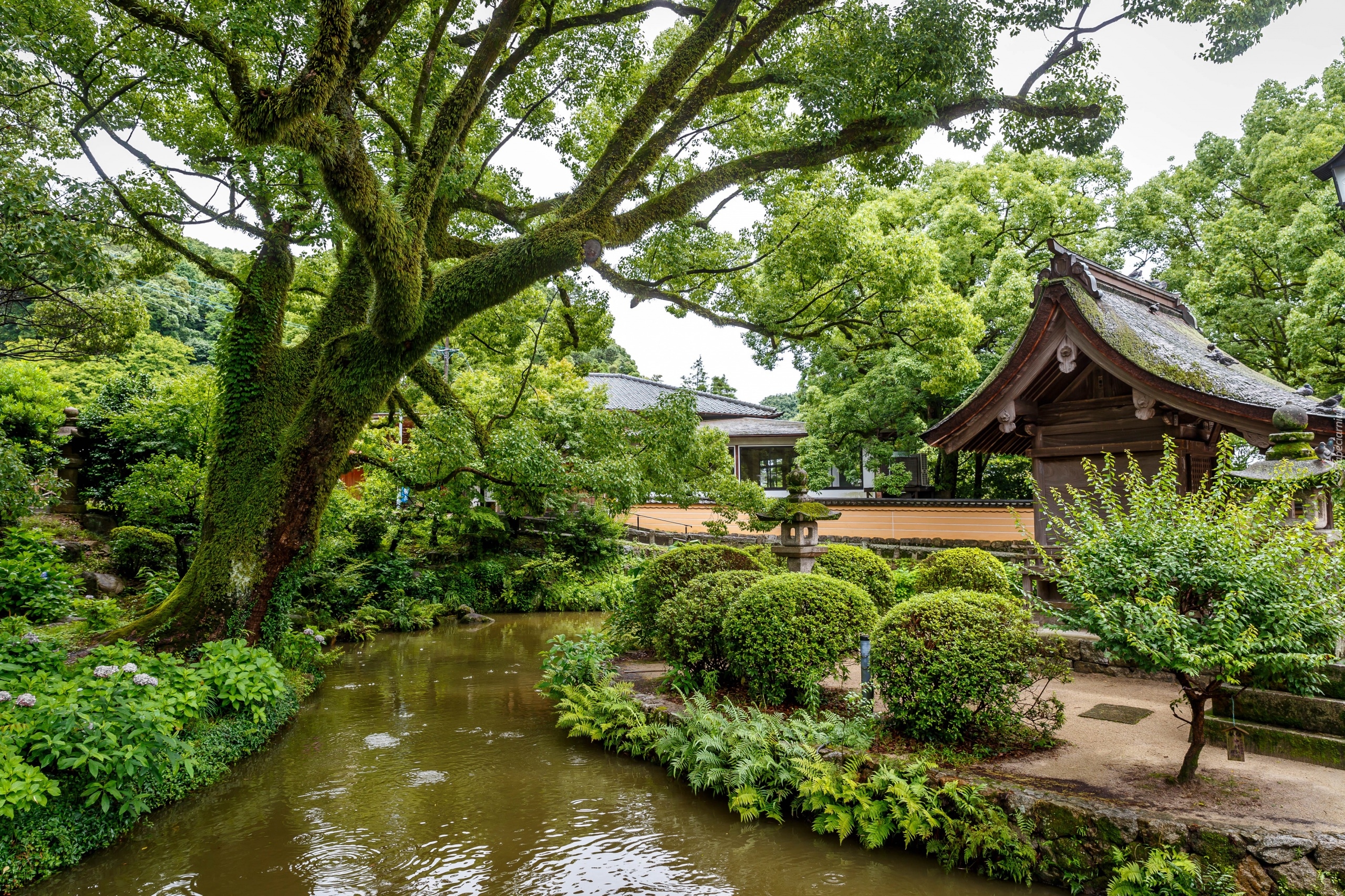 Edytor tapety: Drzewo nad stawem w ogrodzie japońskim