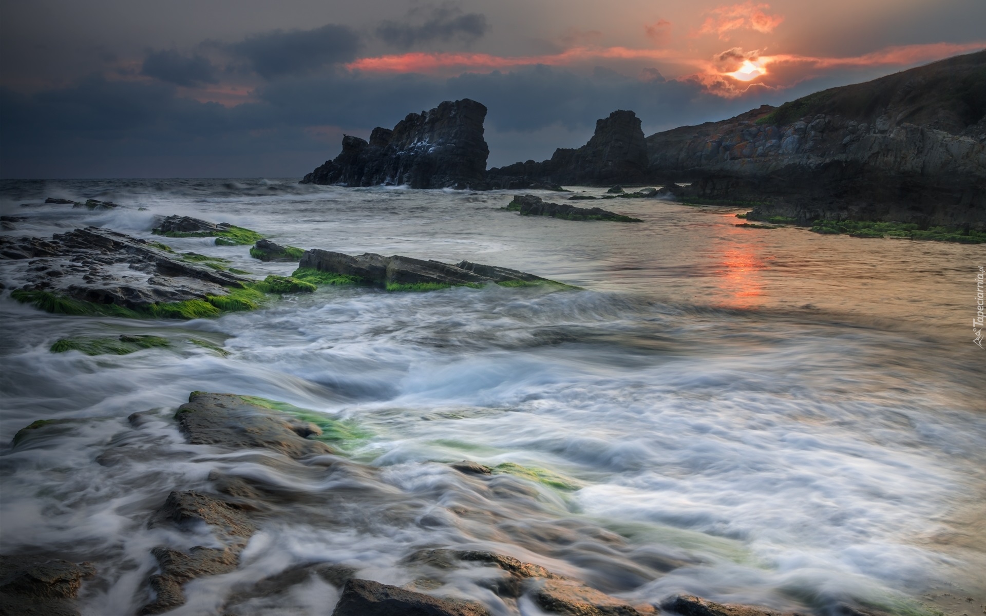 Edytor tapety: Wodorosty na skałach w morzu