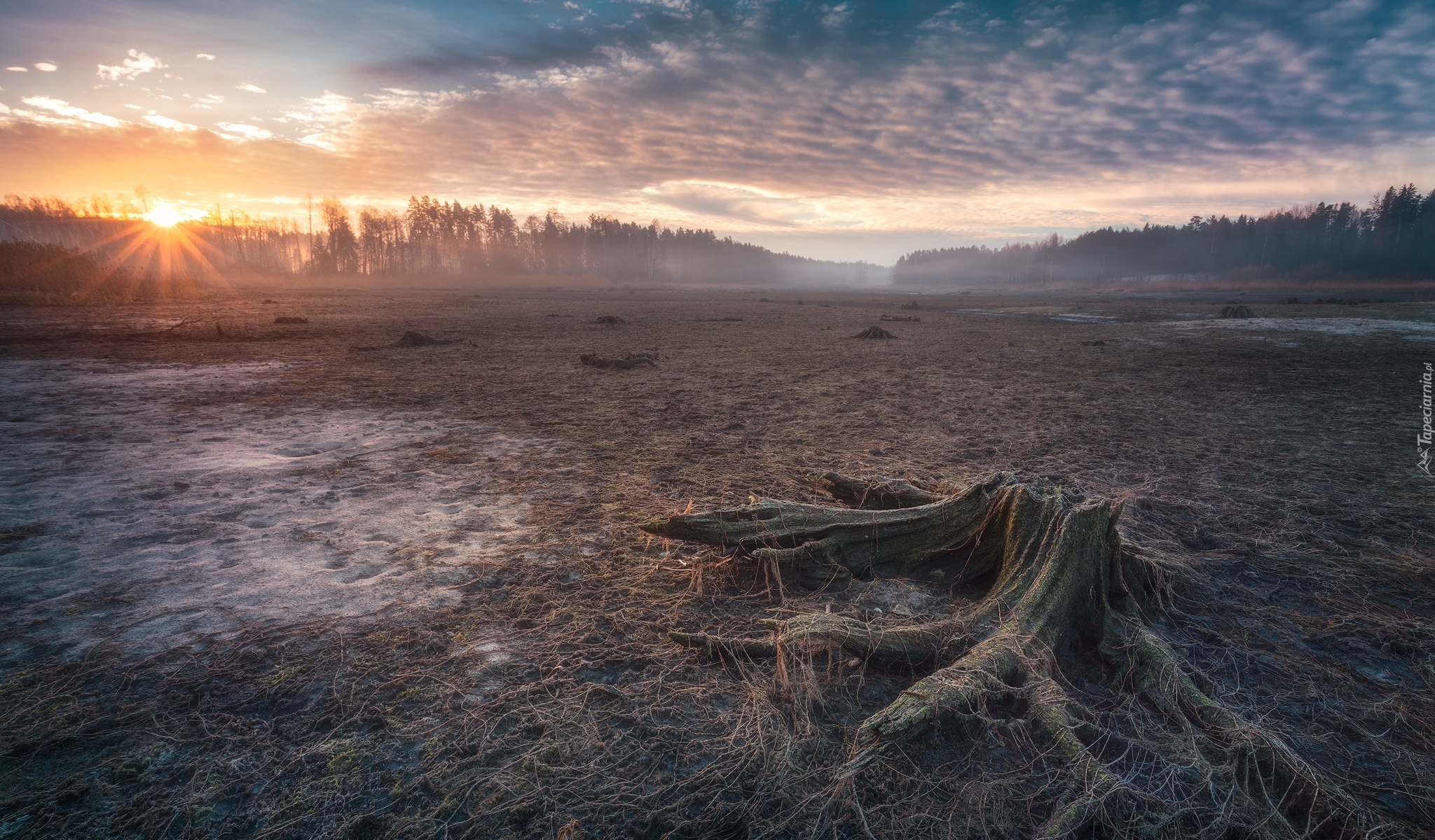 Edytor tapety: Karczowisko w promieniach słońca