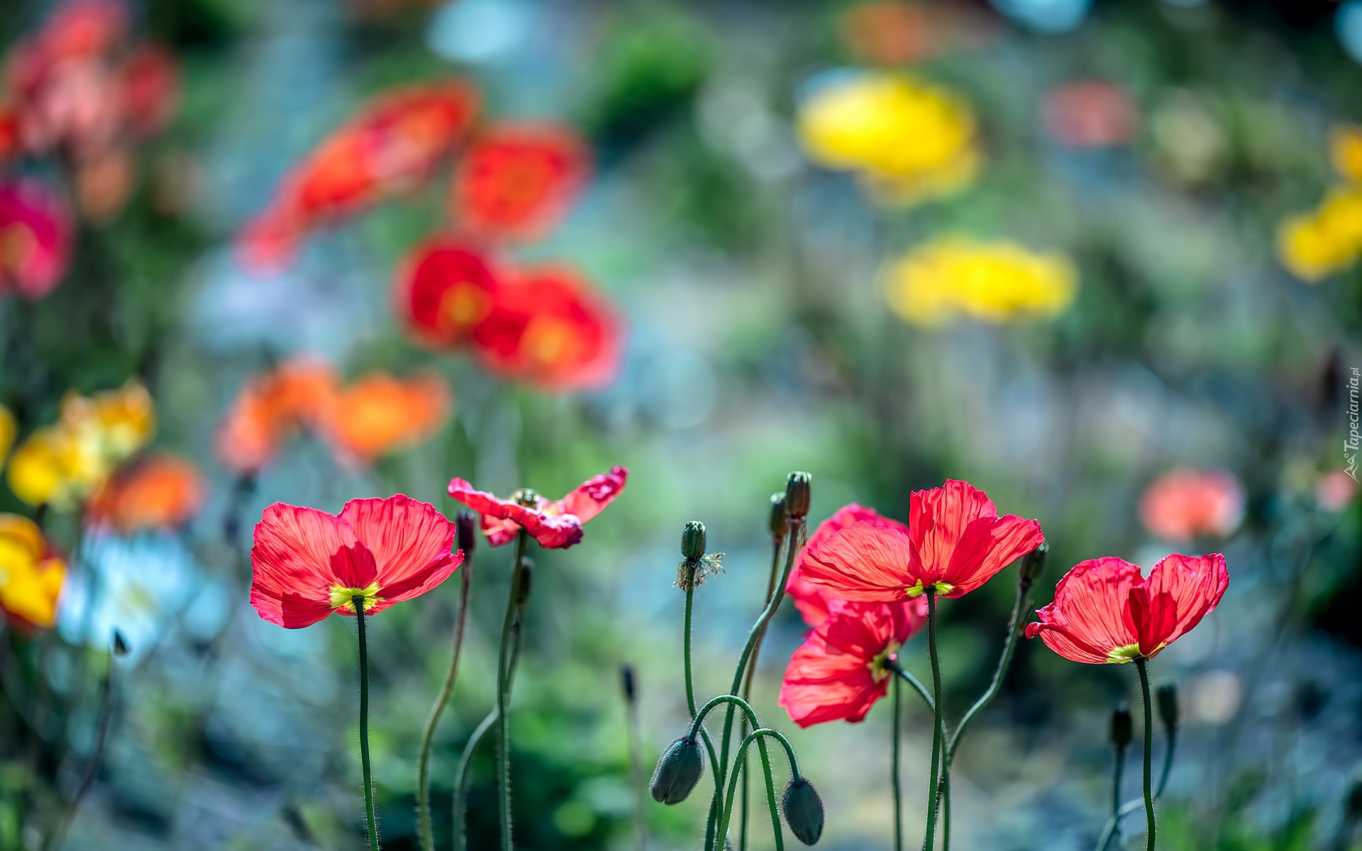 Edytor tapety: Kilka czerwonych maków z pąkami