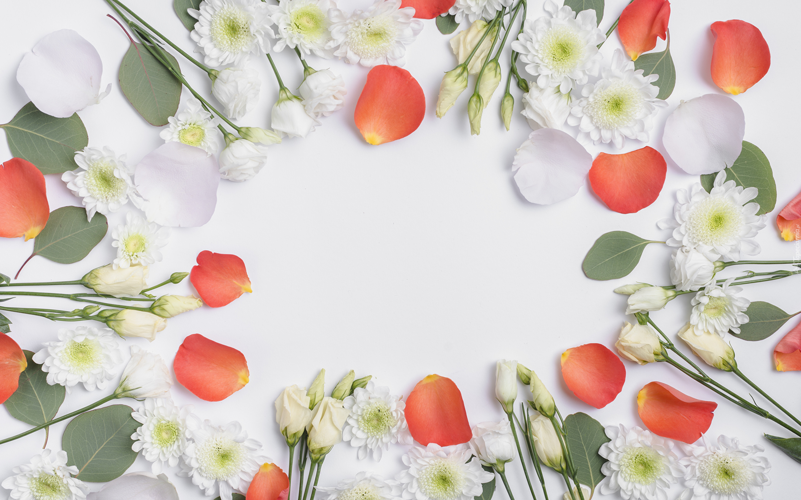 Edytor tapety: Białe kwiaty chryzantemy i eustomy ułożone w okrąg