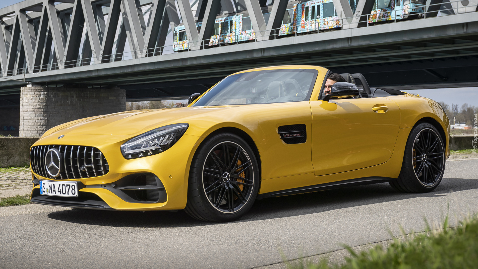Edytor tapety: Żółty Mercedes-AMG GT R bokiem
