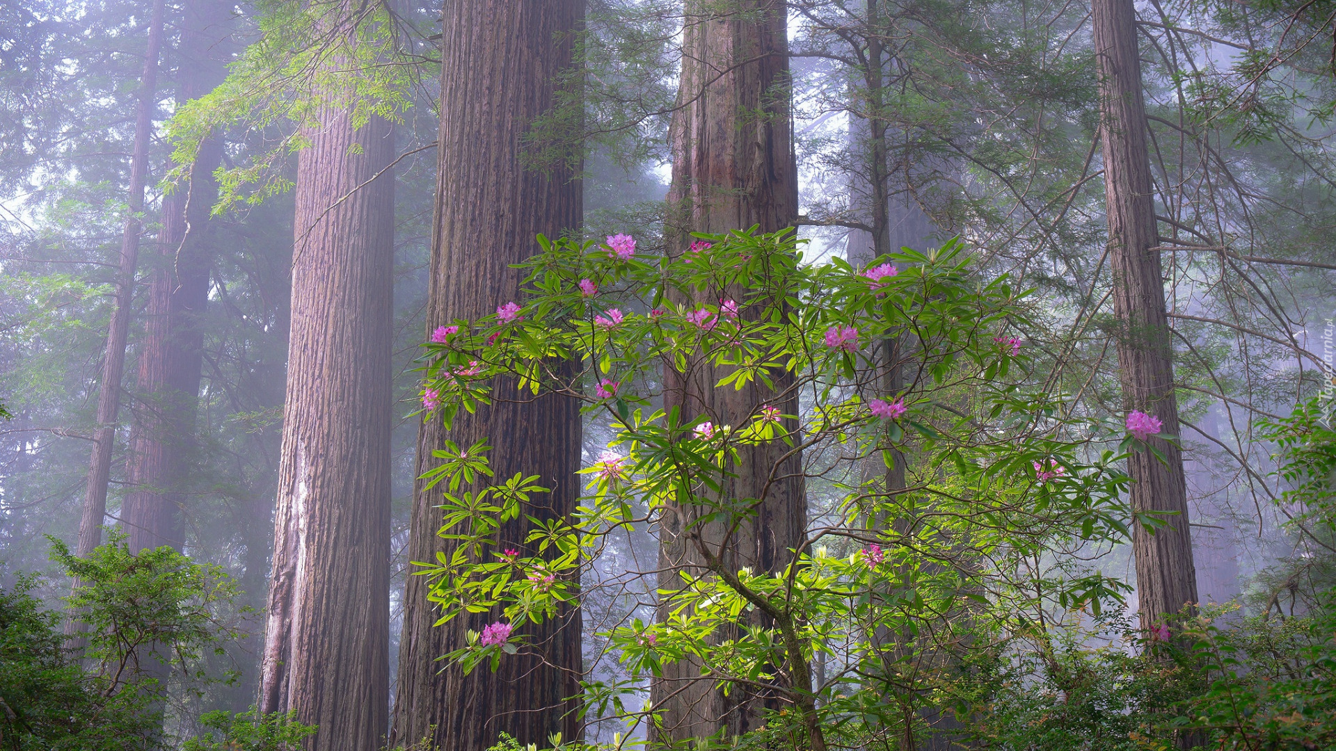 Edytor tapety: Różanecznik na tle drzew w Parku Narodowym Redwood
