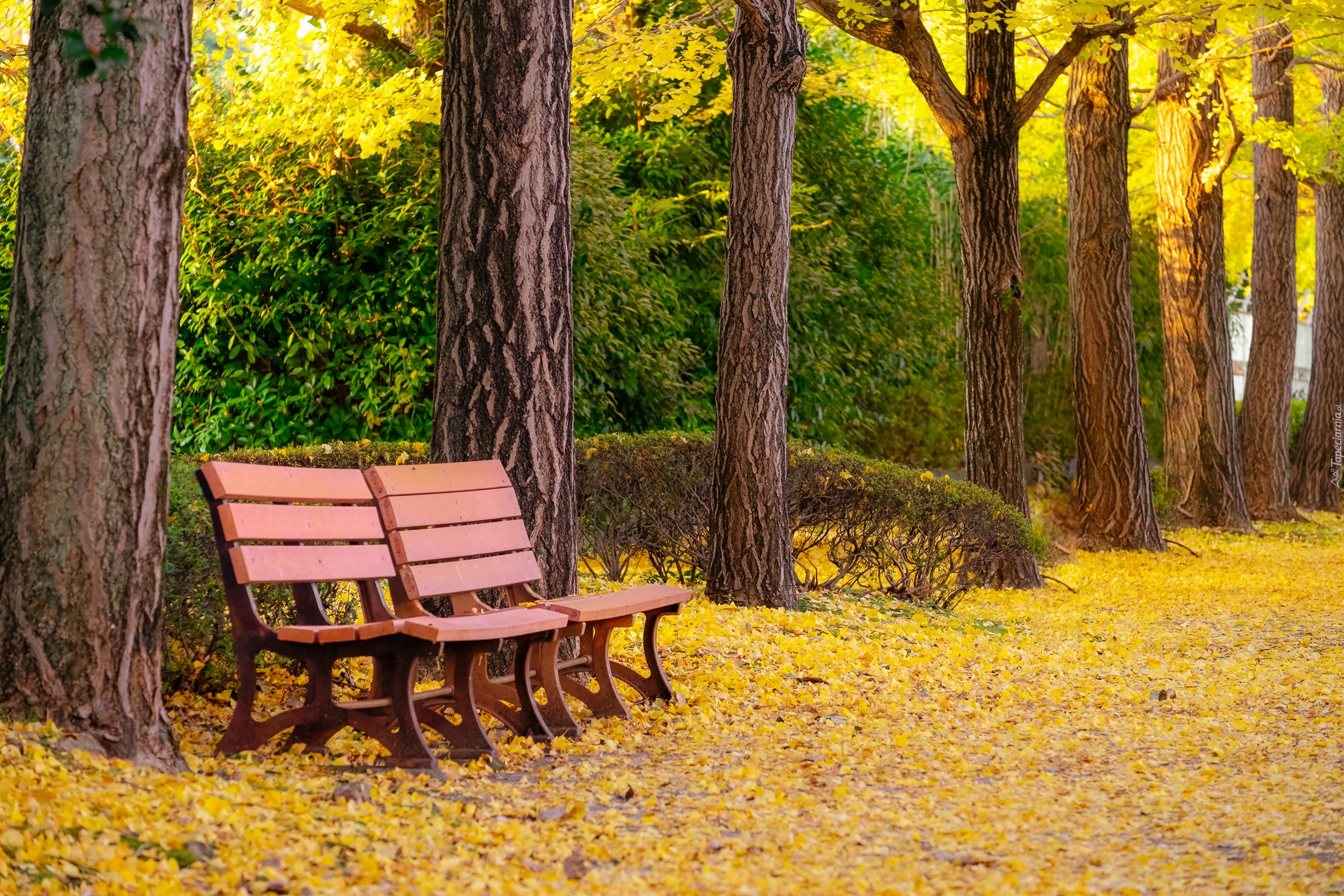Edytor tapety: Dwie ławeczki w jesiennym parku