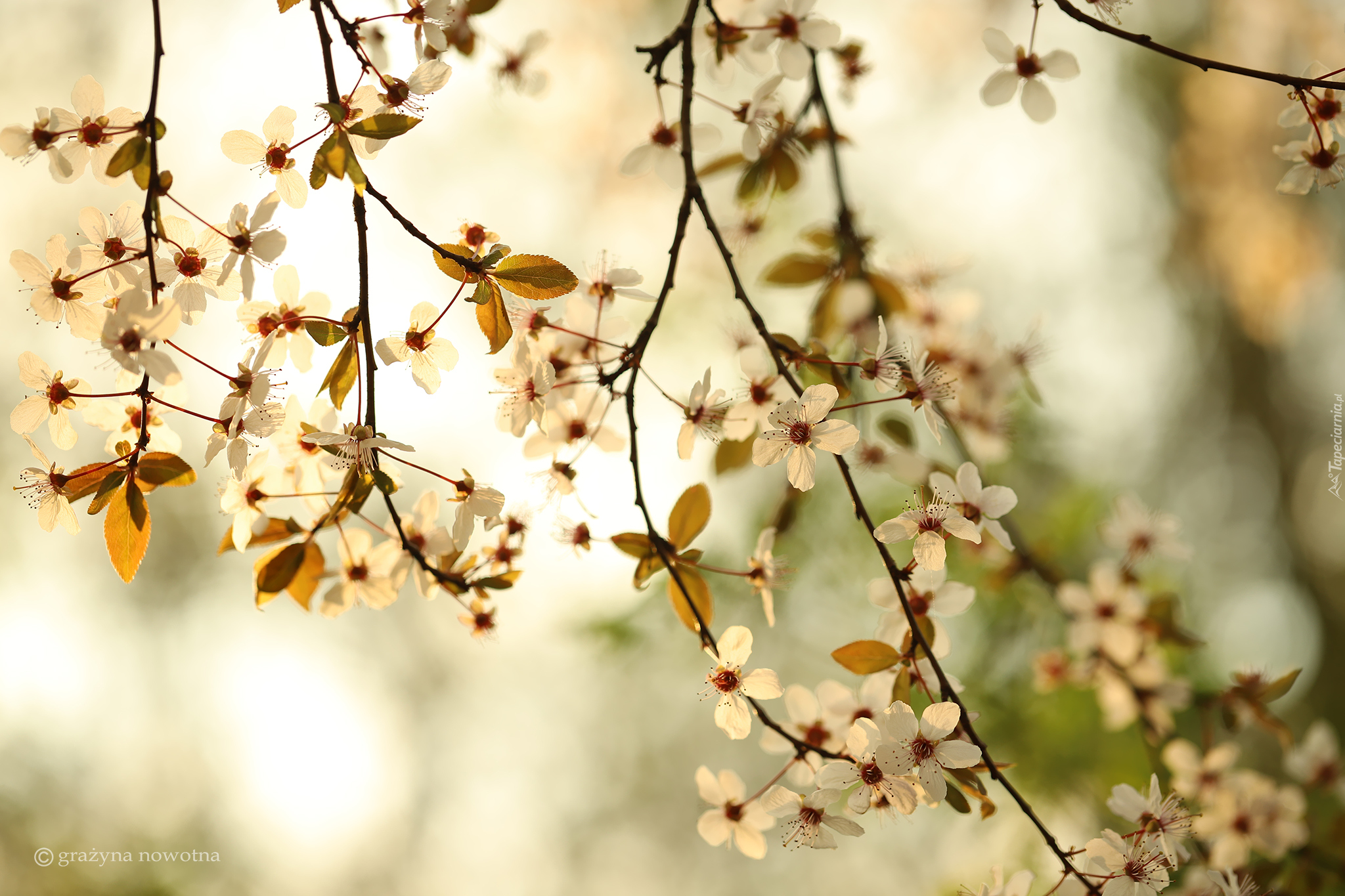 Edytor tapety: Rozświetlone gałązki drzewa owocowego