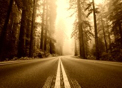 Edytor tapety: Sekwoje przy drodze