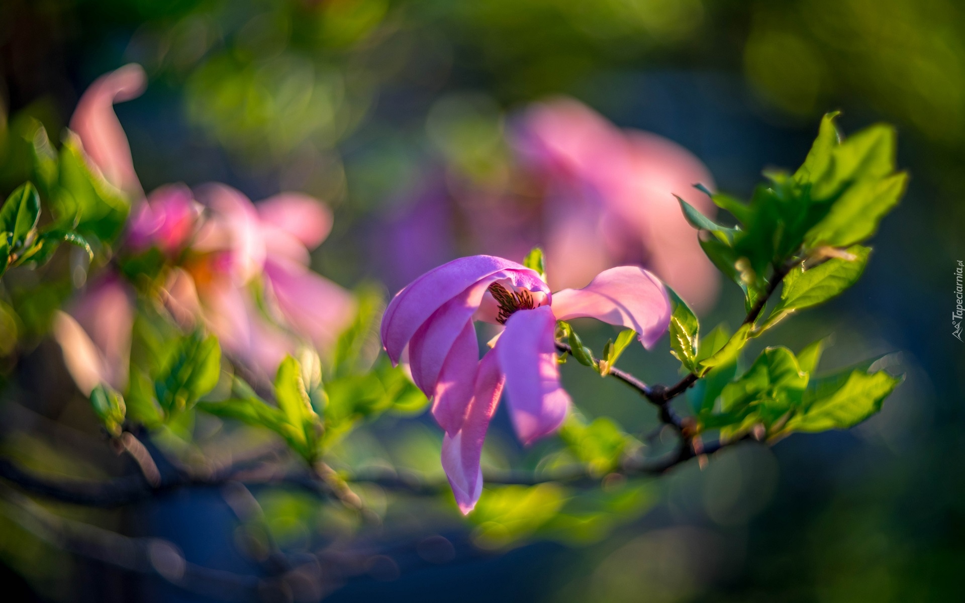 Edytor tapety: Gałązka magnolii na rozmytym tle