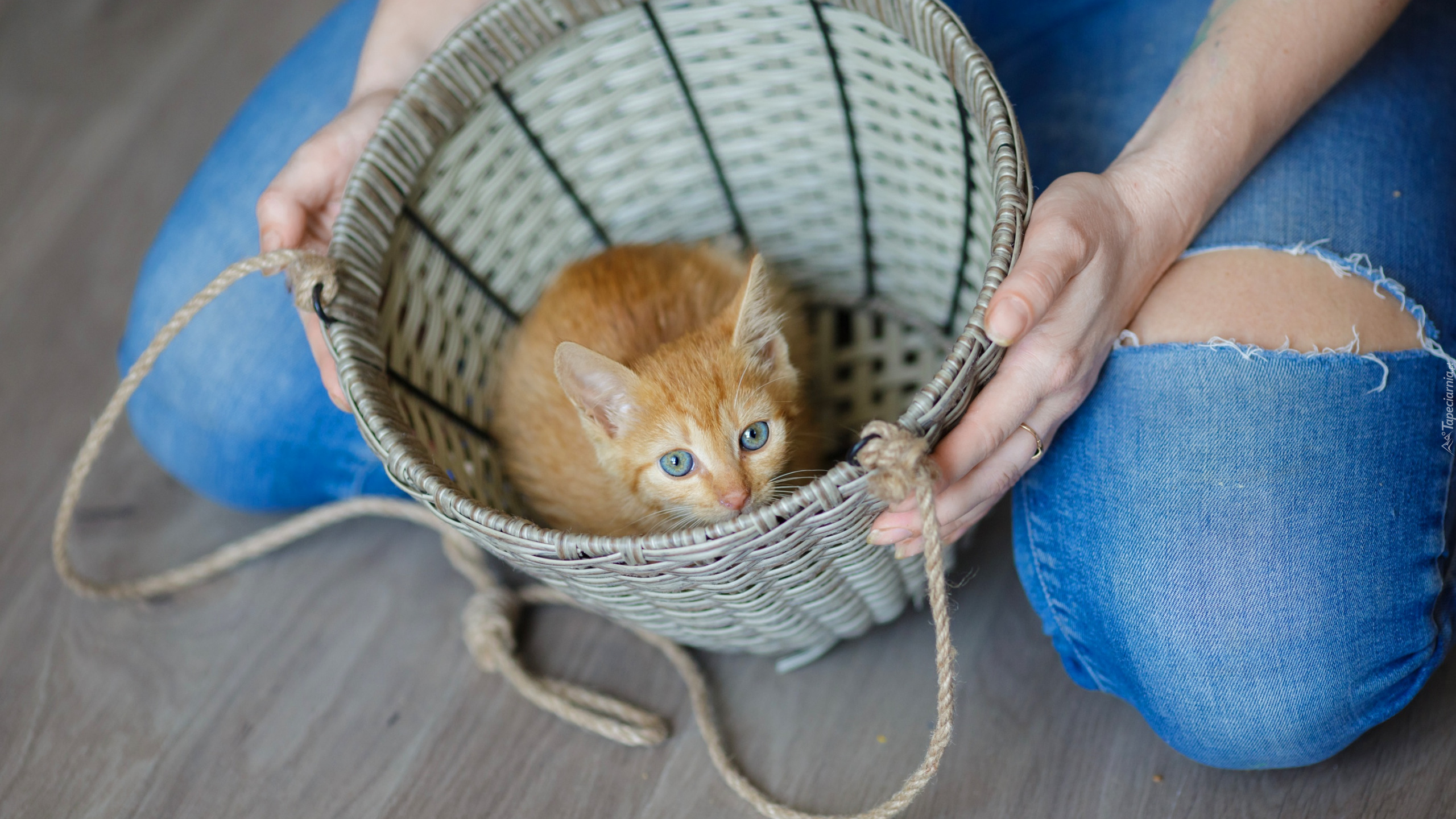 Edytor tapety: Rudy kotek w koszyczku