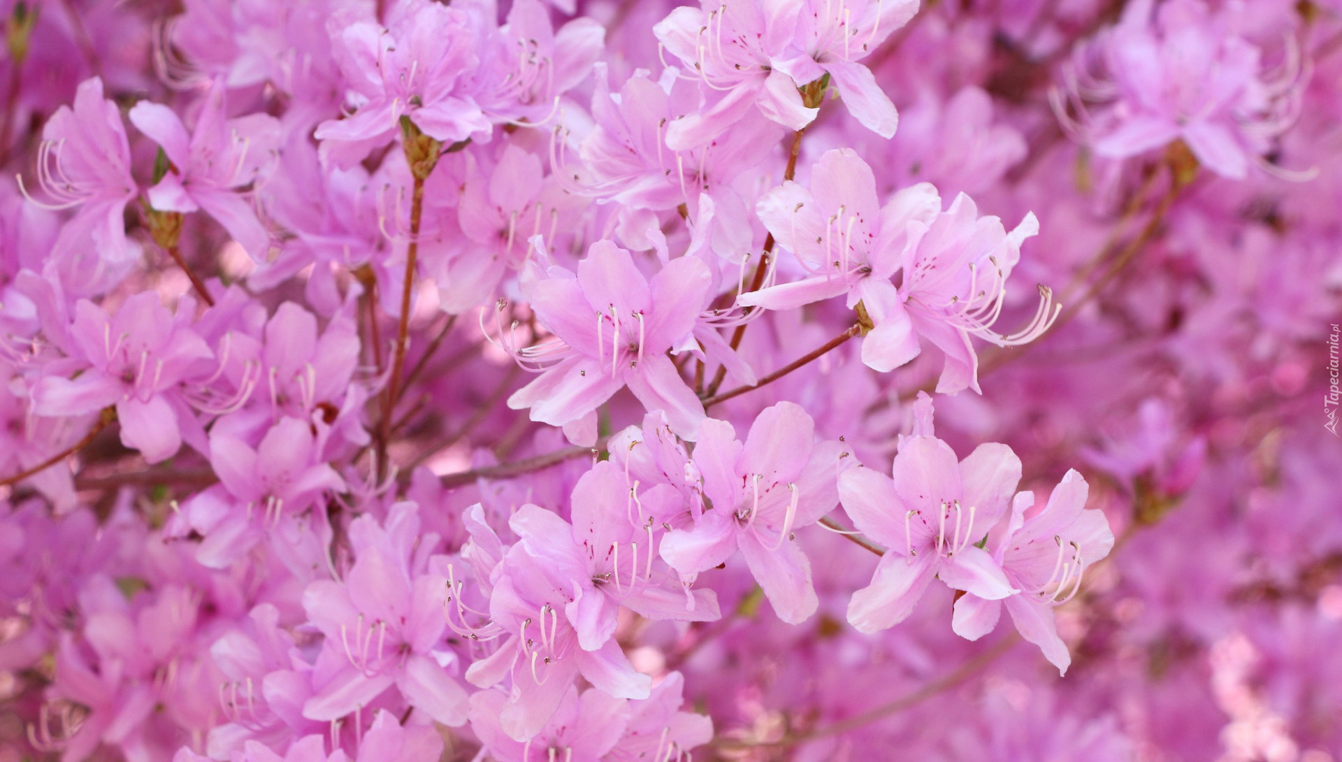 Edytor tapety: Różowe kwiaty różanecznika na gałązce