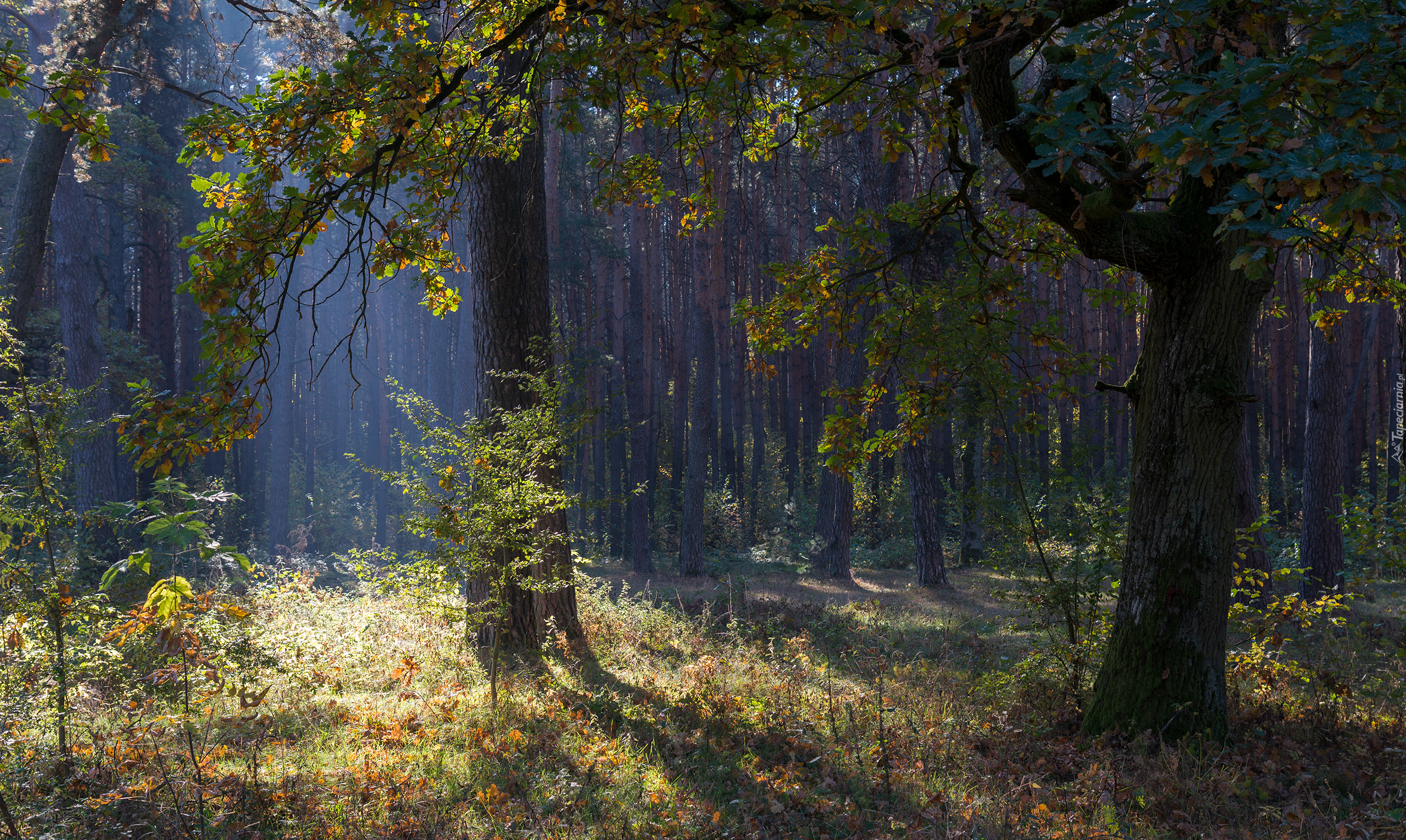 Edytor tapety: Rozświetlony słońcem las