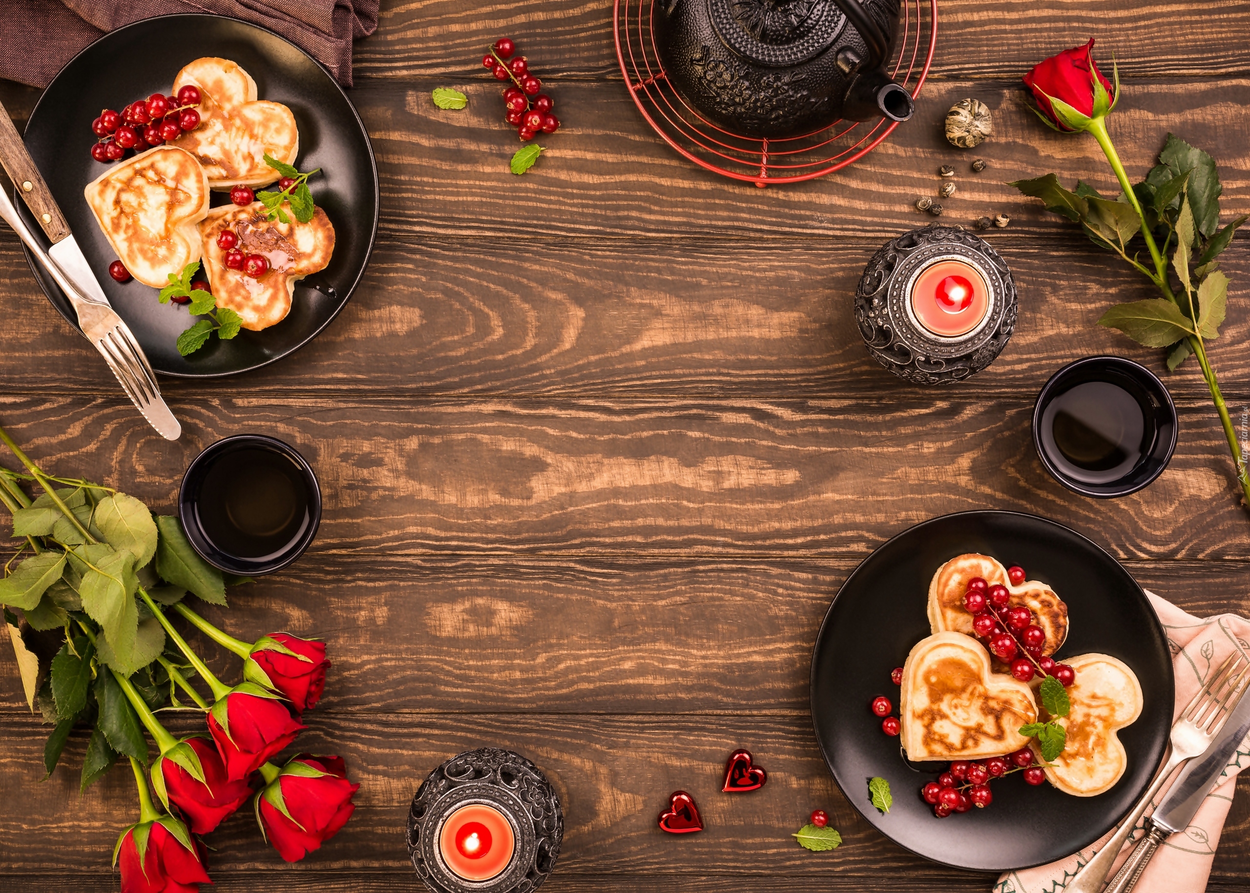Edytor tapety: Naleśniki w kształcie serca na talerzach