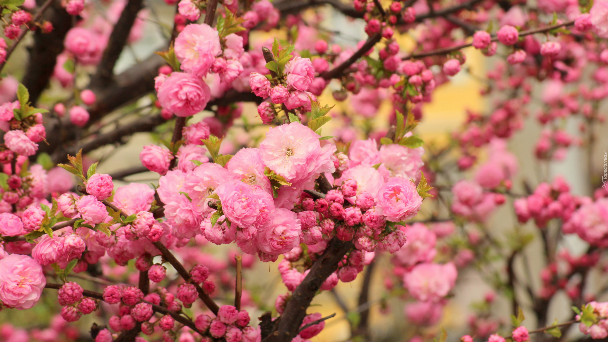 Edytor tapety: Różowe kwiaty migdałka na gałązkach