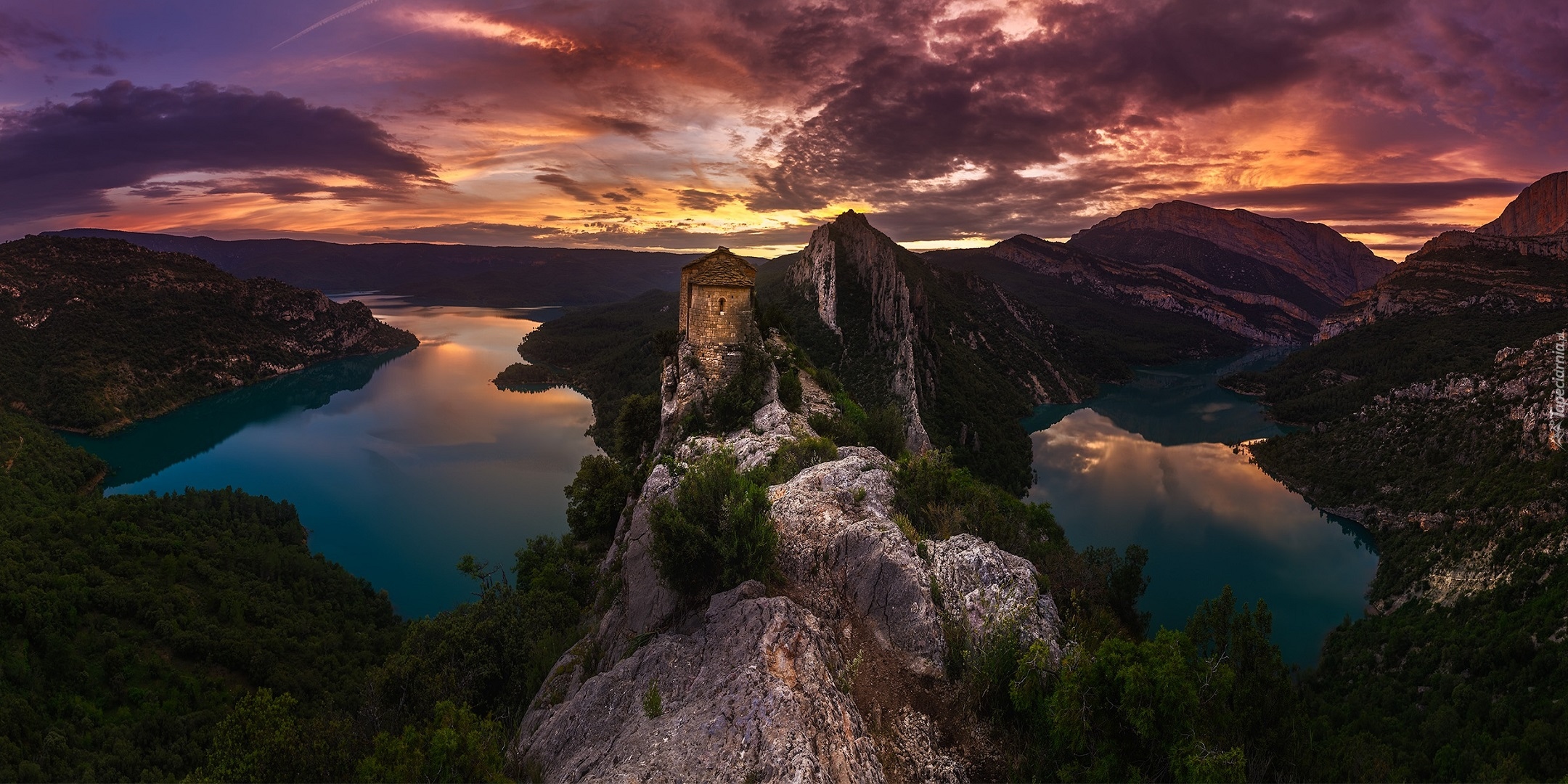 Edytor tapety: Dwa górskie jeziora pomiędzy skałami