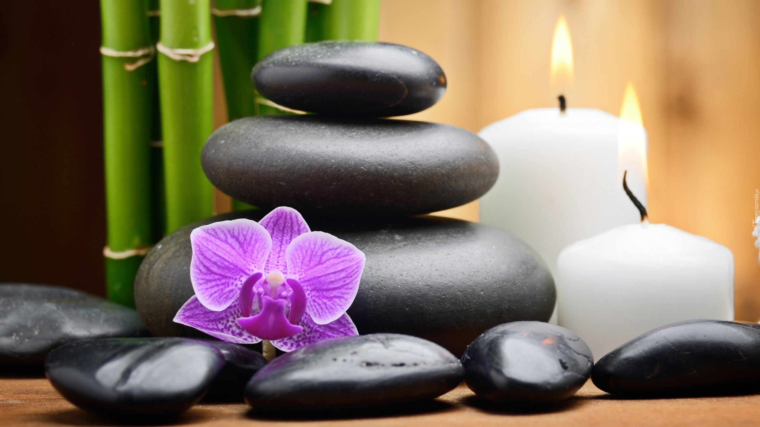 Edytor tapety: Storczyk na kamieniach obok świec