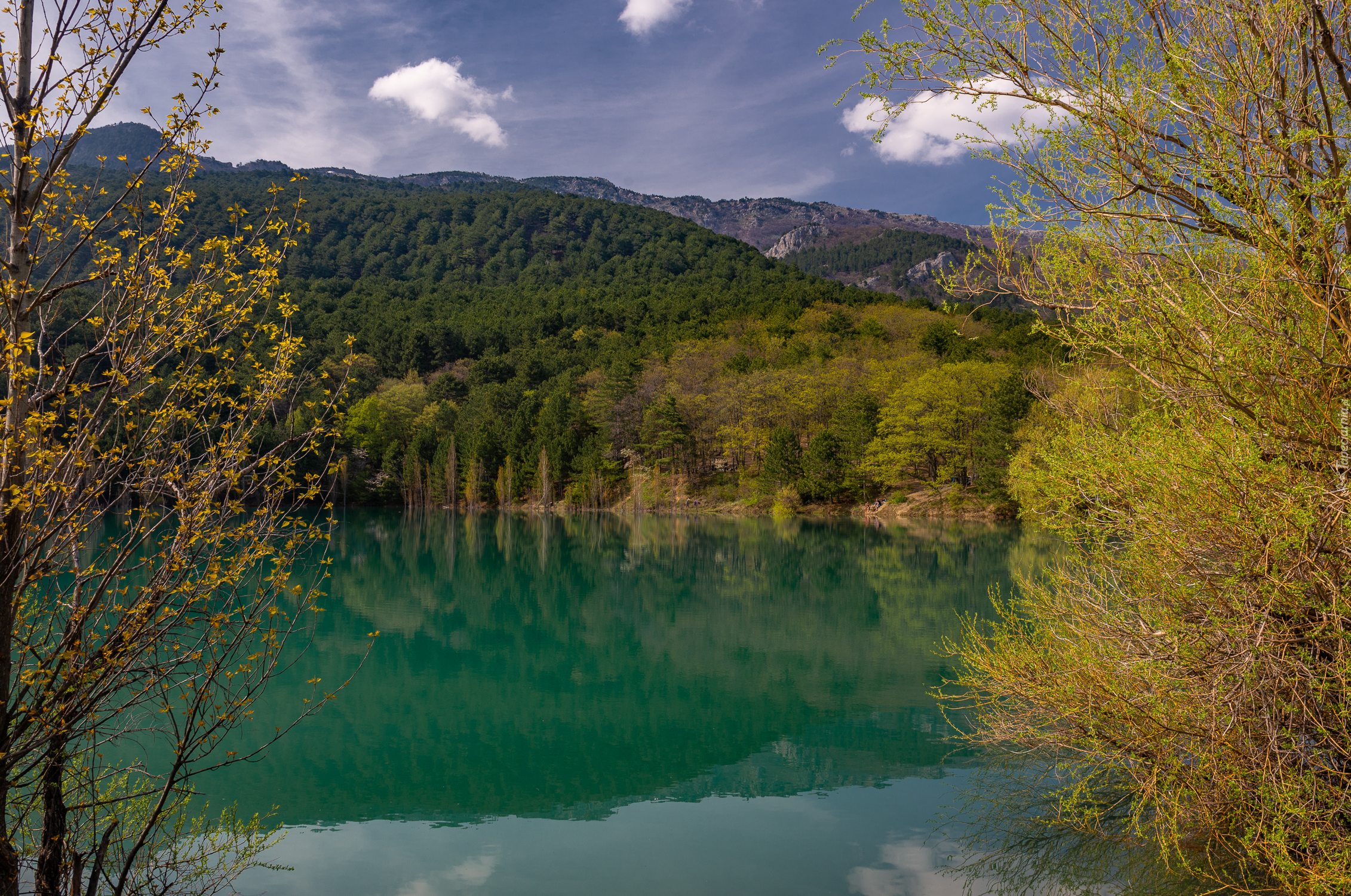 Edytor tapety: Widok na jezioro w górach