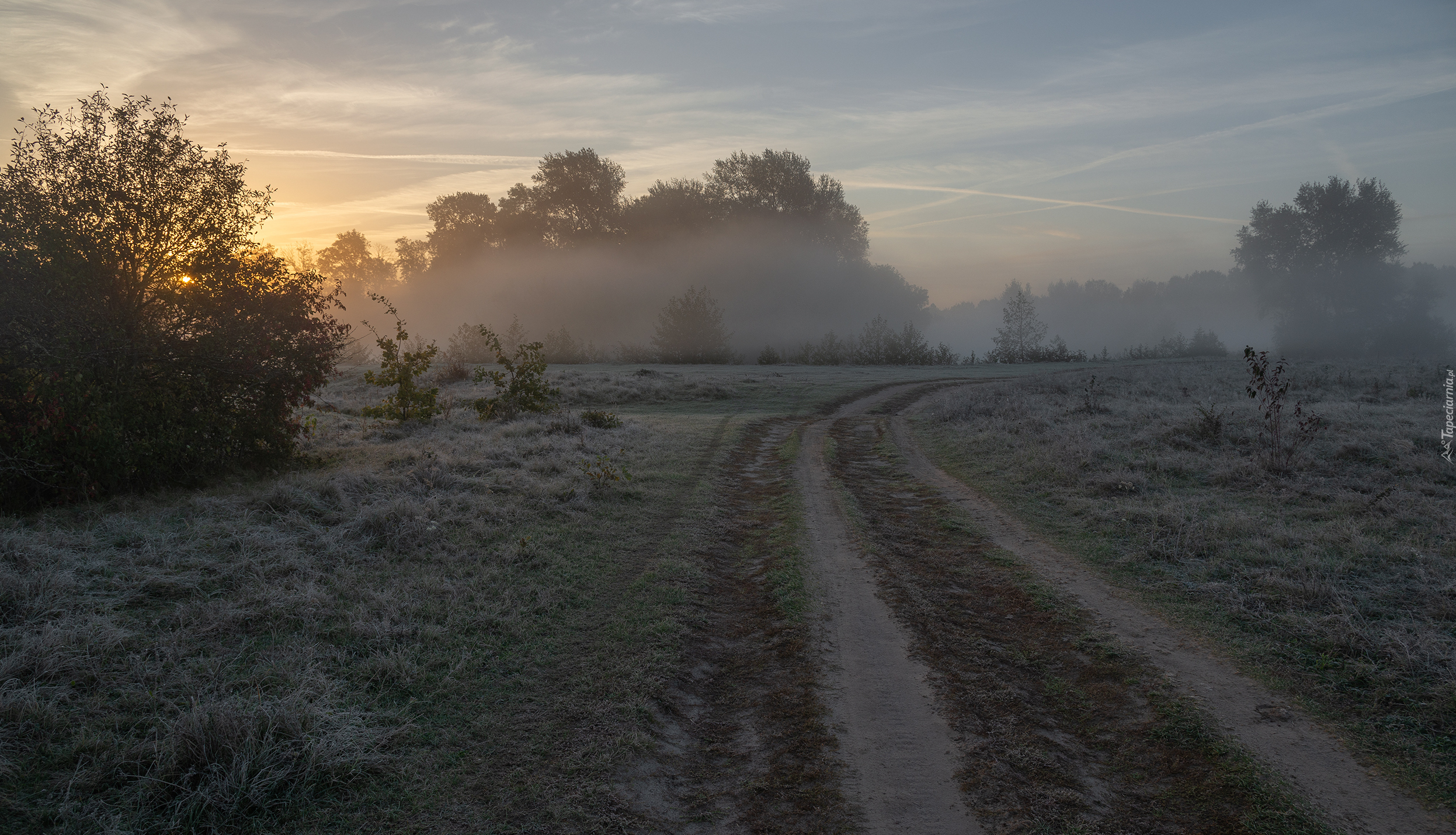 Edytor tapety: Droga pośród oszronionych traw na łące