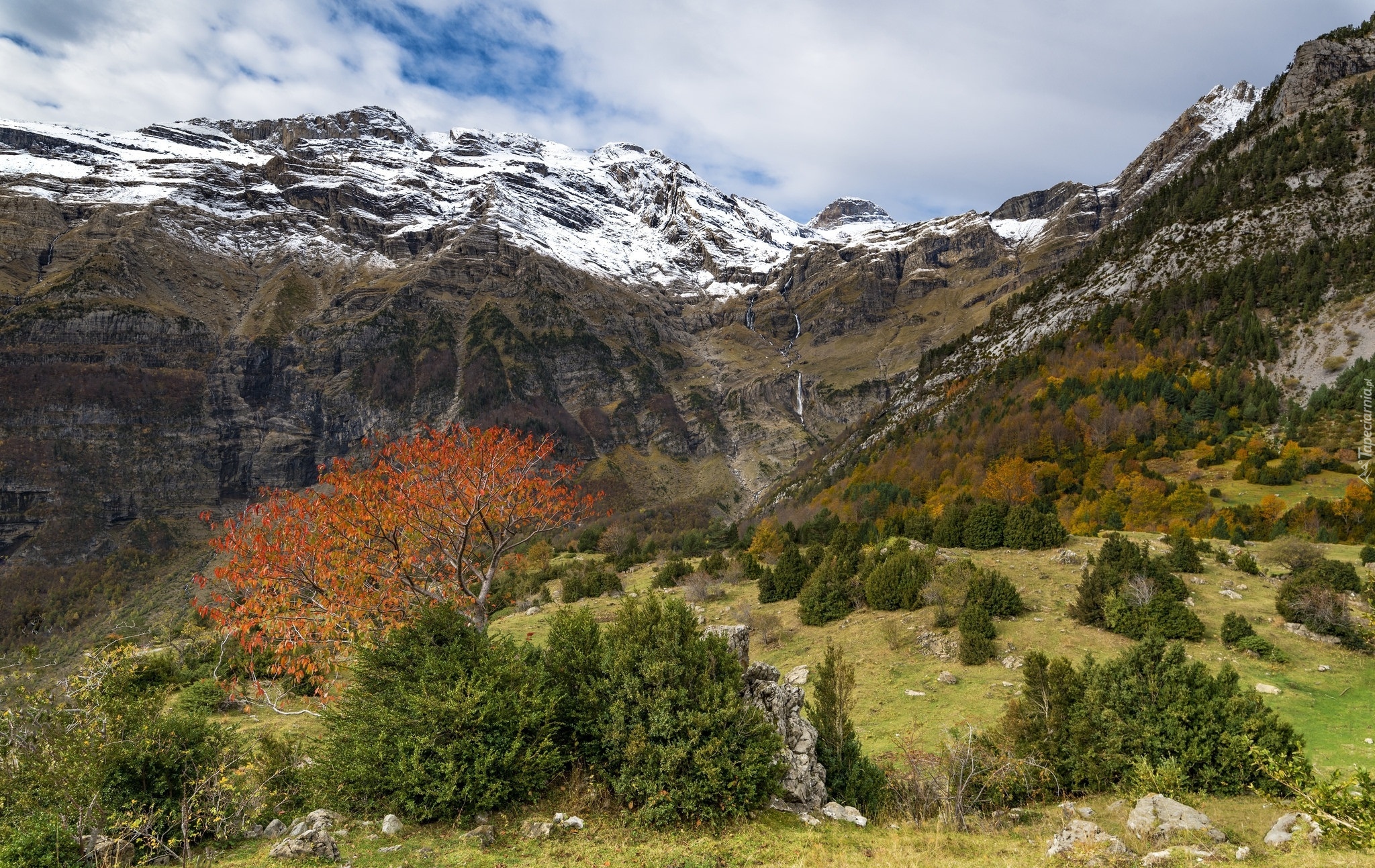 Edytor tapety: Drzewa i krzewy w górskiej dolinie