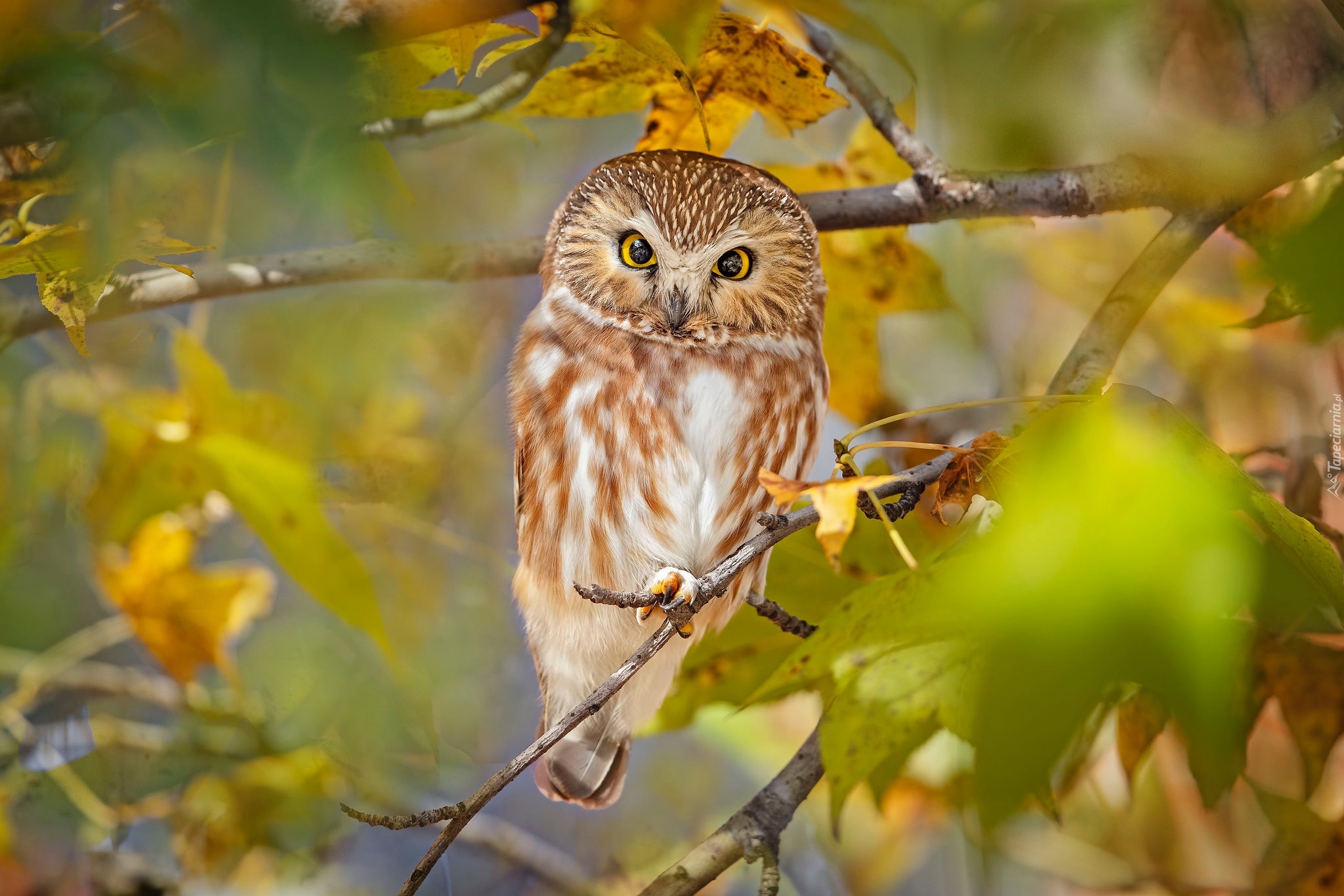 Edytor tapety: Włochatka zwyczajna na gałązce