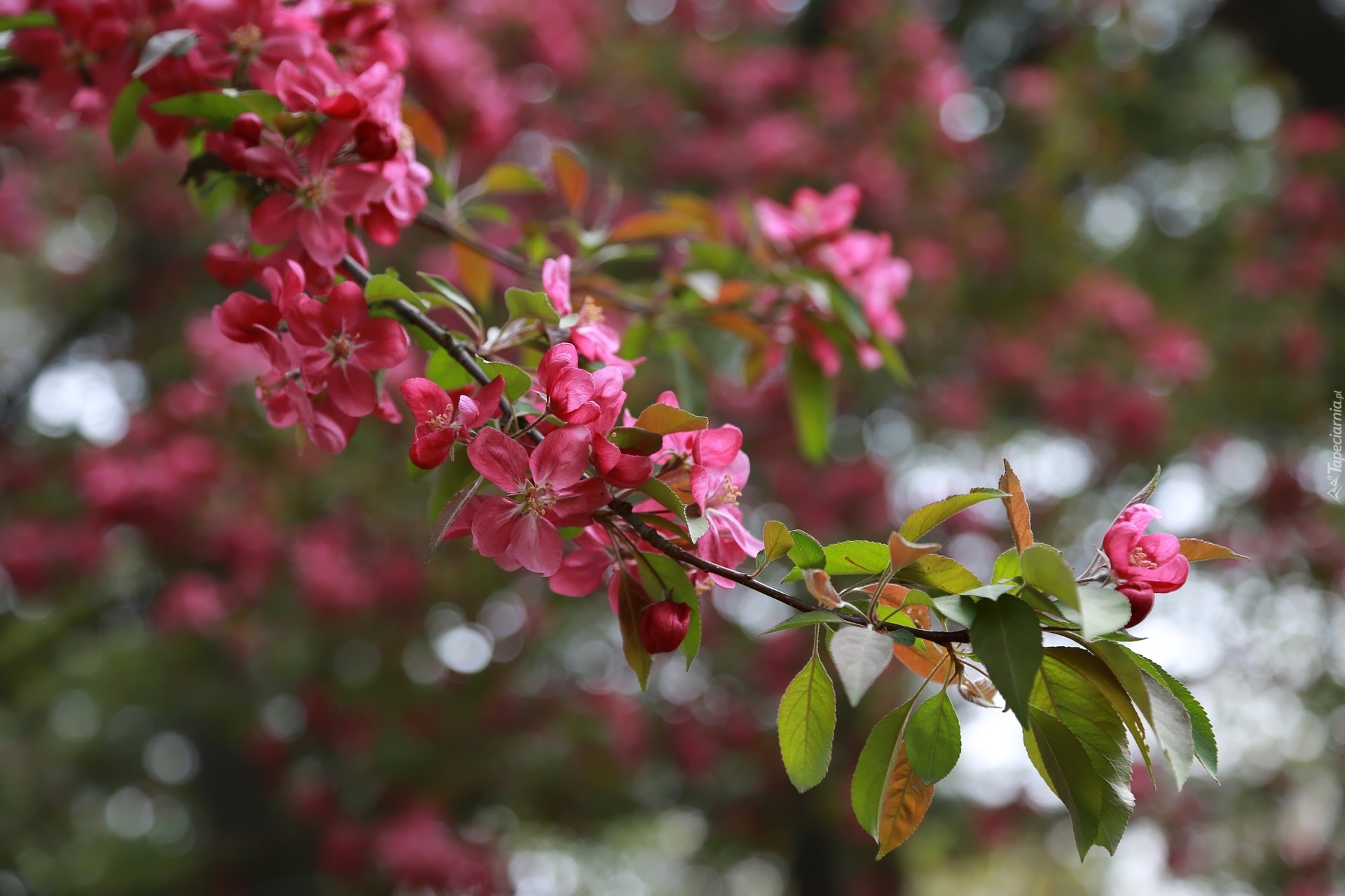 Edytor tapety: Różowe kwiaty wiśni na gałązkach