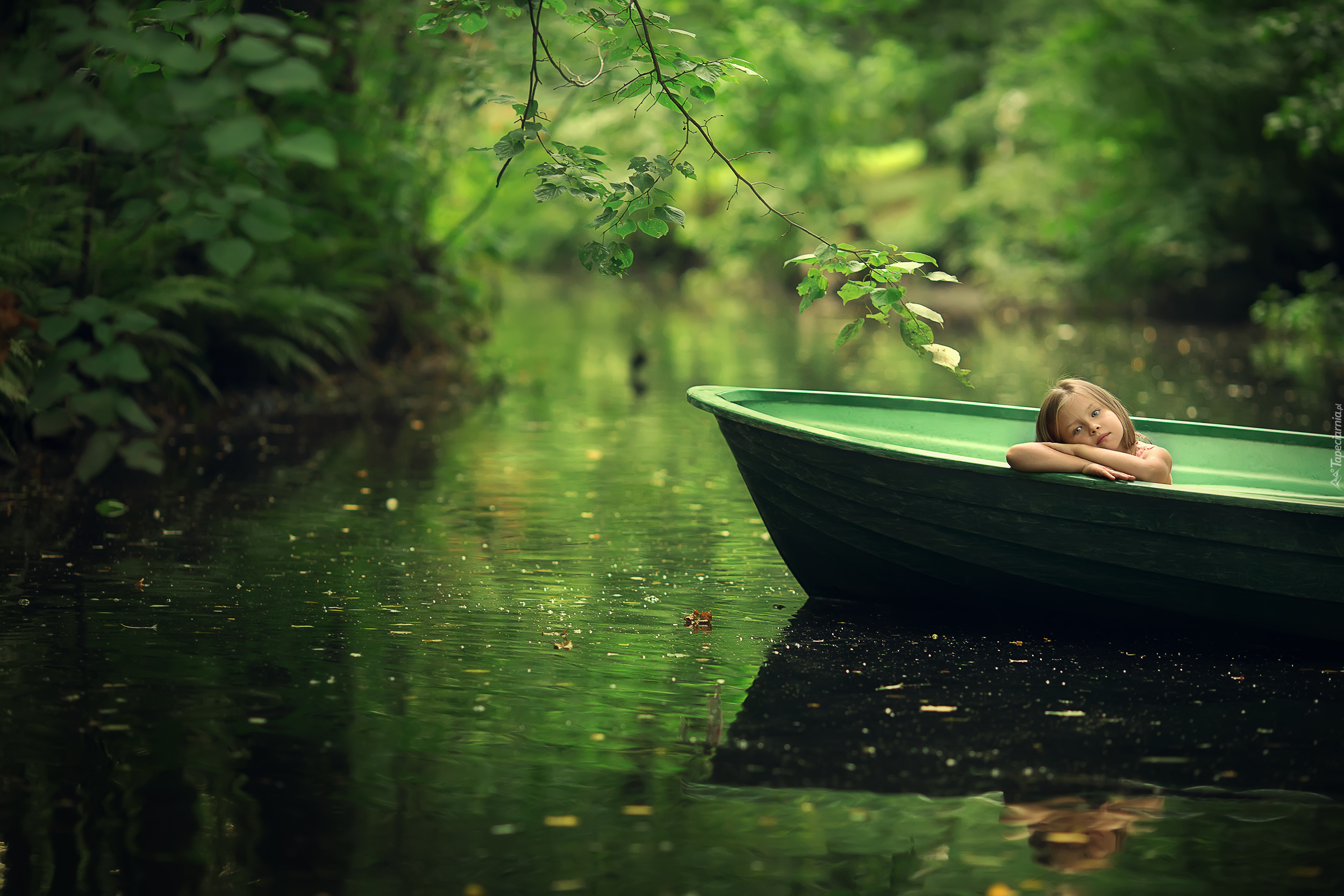 Edytor tapety: Dziewczynka w łódce na rzece
