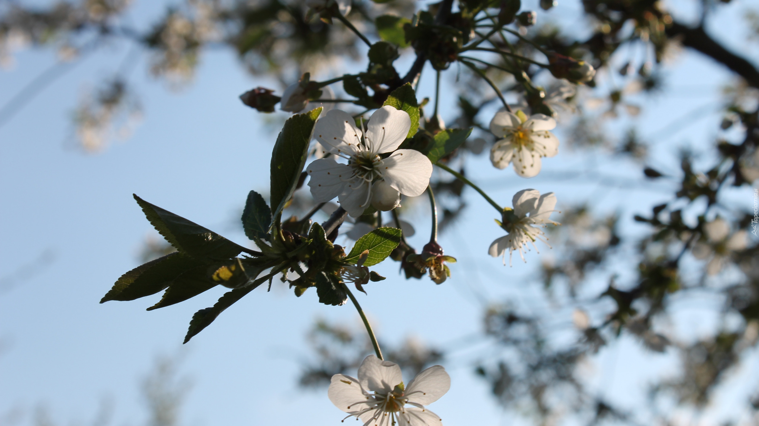 Edytor tapety: Okwiecona białymi kwiatami gałązka