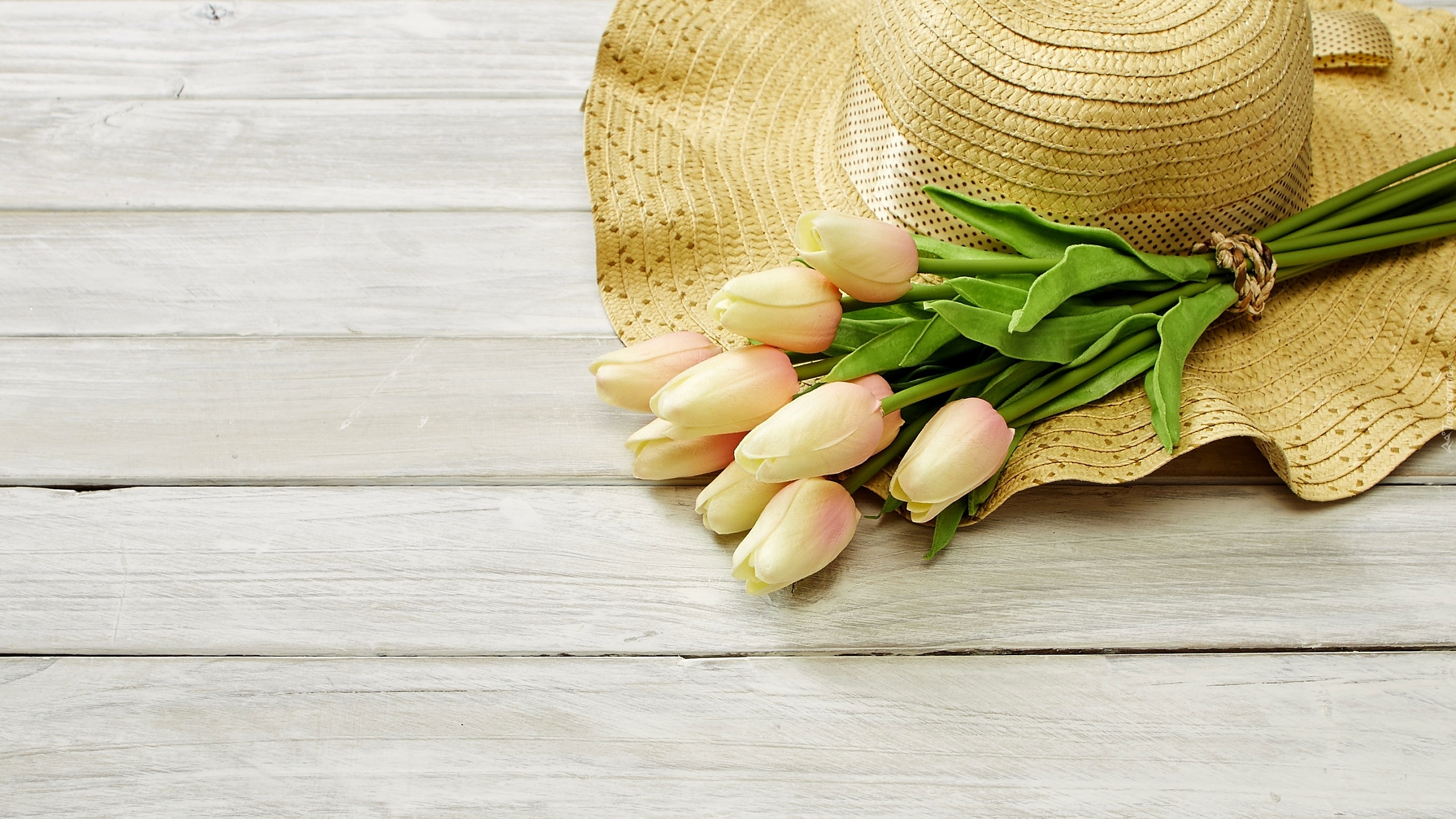 Edytor tapety: Sztuczne tulipany na kapeluszu