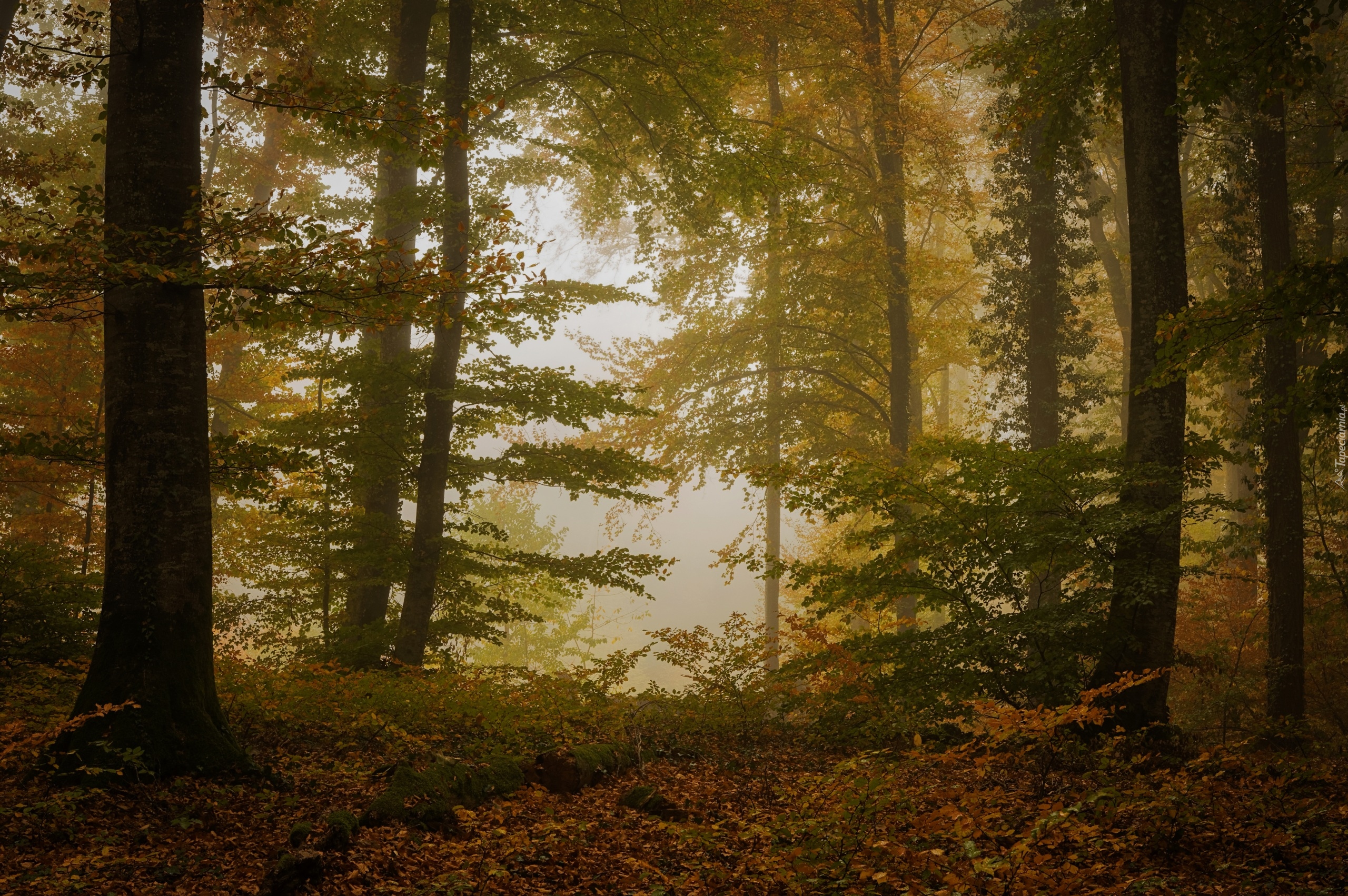 Edytor tapety: Mgła w lesie liściastym