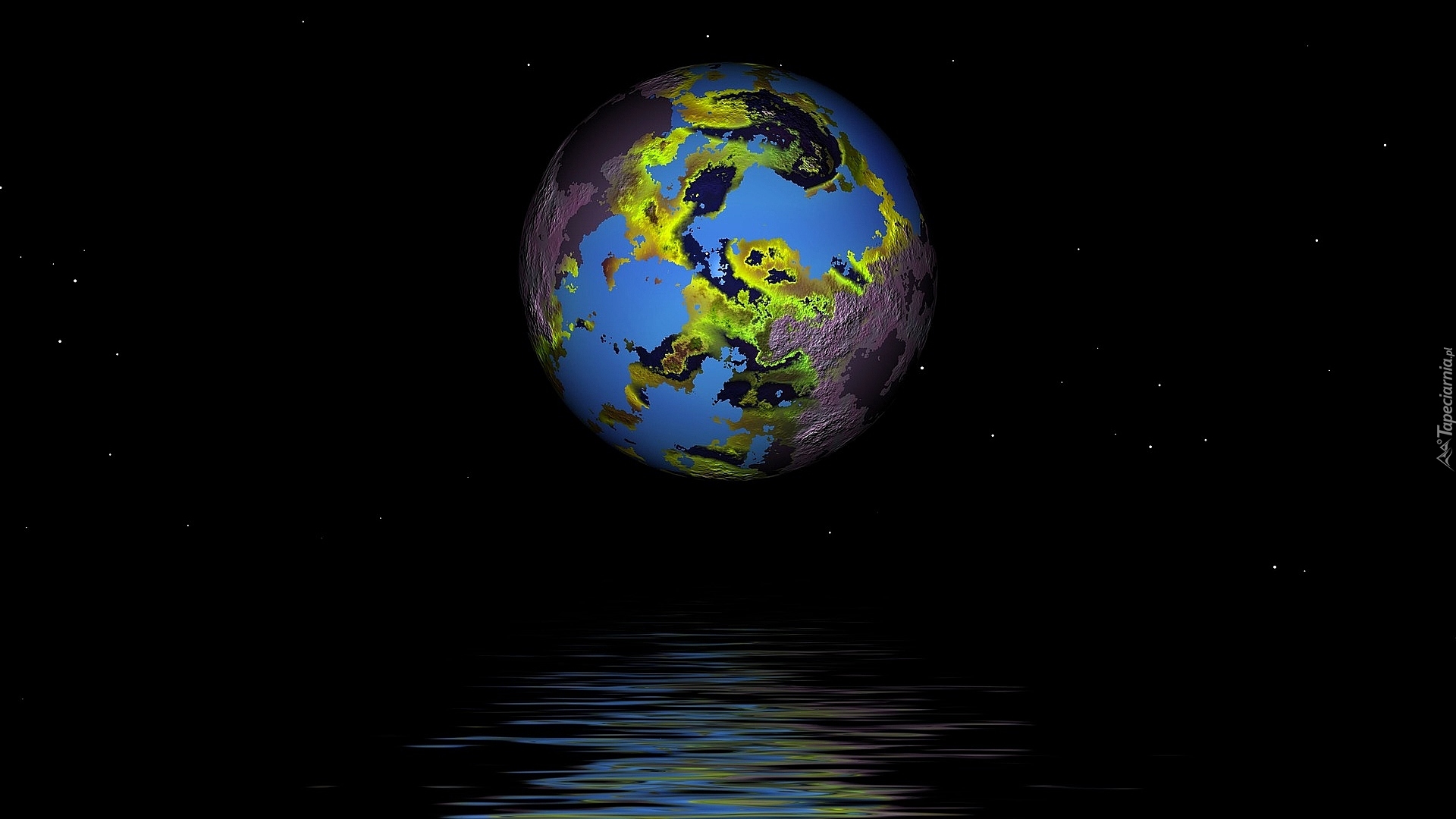 Edytor tapety: Gwiazdy wokół planety nad wodą