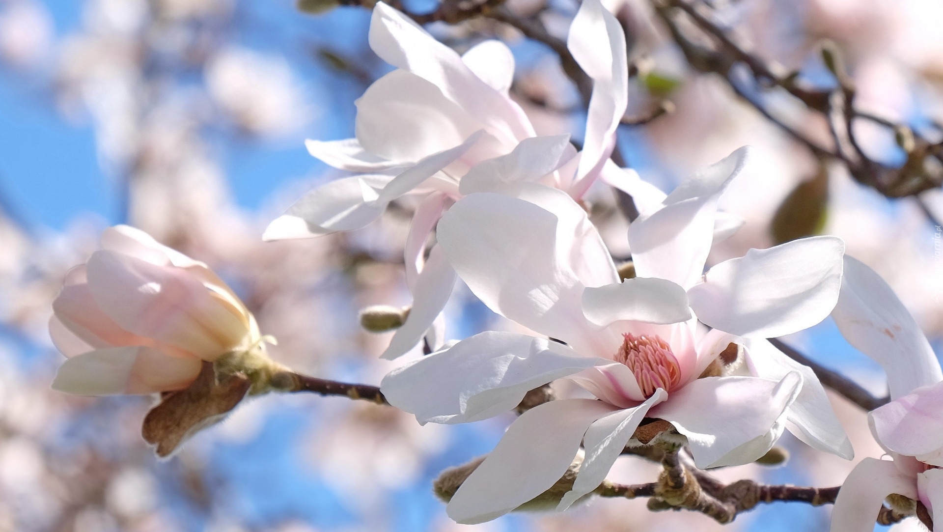 Edytor tapety: Gałązka z białymi magnoliami