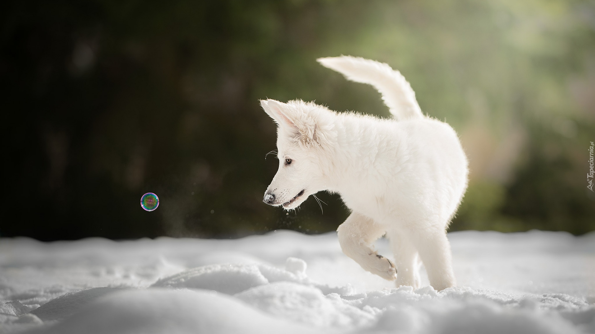 Edytor tapety: Biały owczarek szwajcarski na śniegu